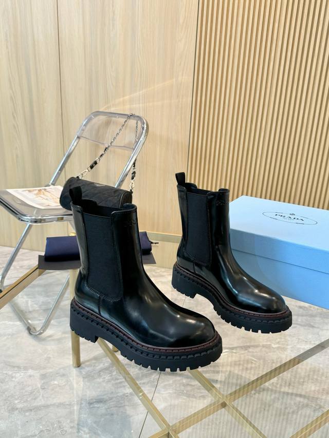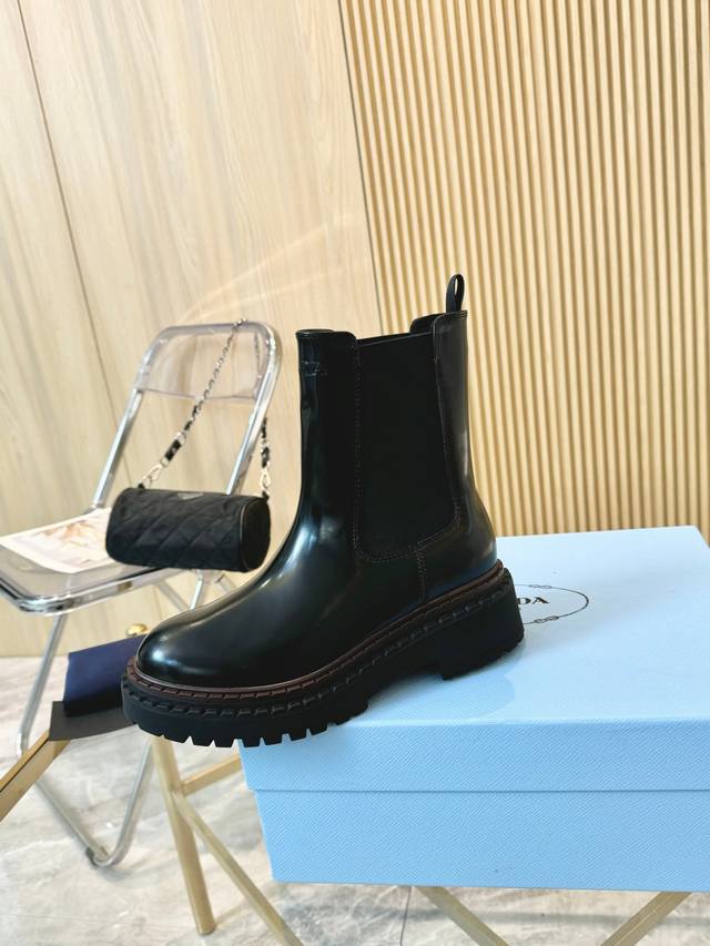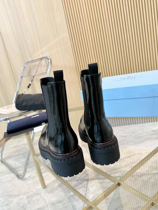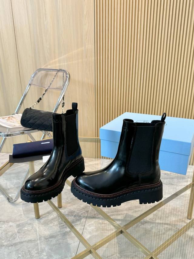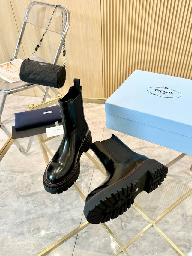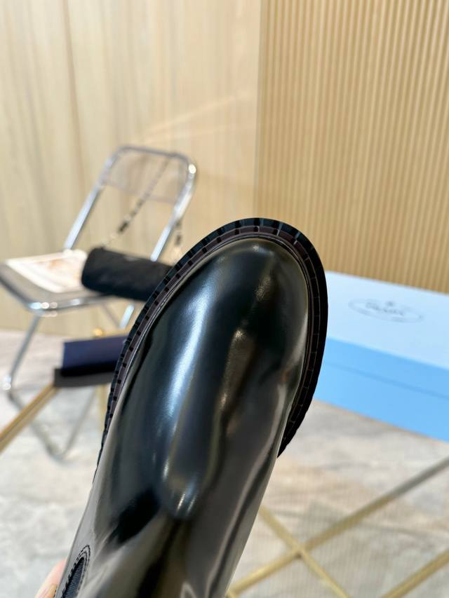 Fashion Never Compromises! Prada Genuine Leather Platform Riding Boots, Slip-on Dr. Martens Stunningly Debut! These boots are crafted from top-grade distressed leather, offering an exceptionally luxurious feel and unparalleled comfort. The distinctive peep-toe platform design adds a touch of sophistication! Not only do they elongate your legs, but they also enhance your unique aura. Whether strolling the streets or attending a party, they are the perfect companion. Pair them with skinny jeans for a polished look; with a skirt for a cool and playful vibe. Every stitch embodies Prada's exquisite craftsmanship and dedication. Wearing them will make you the center of attention, showcasing your unique charm. Don't hesitate any longer, own these irresistibly stylish boots! Material: Vintage Distressed Leather Lining: Breathable Leather Lining + Leather Insole Sole: Double-layer Peep-toe Rubber Sole Sizes: Standard Sizes 35-41