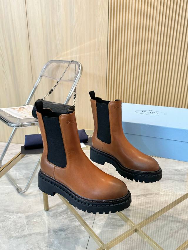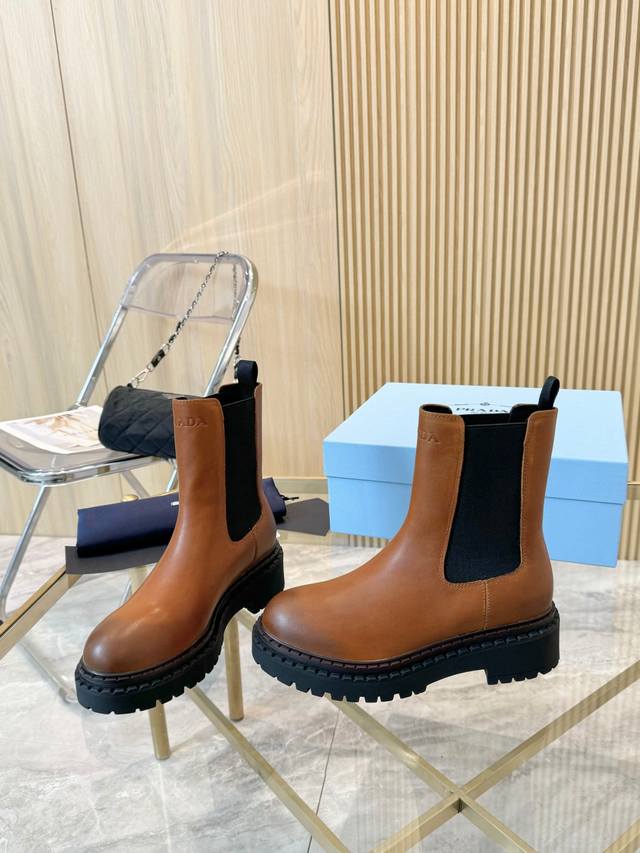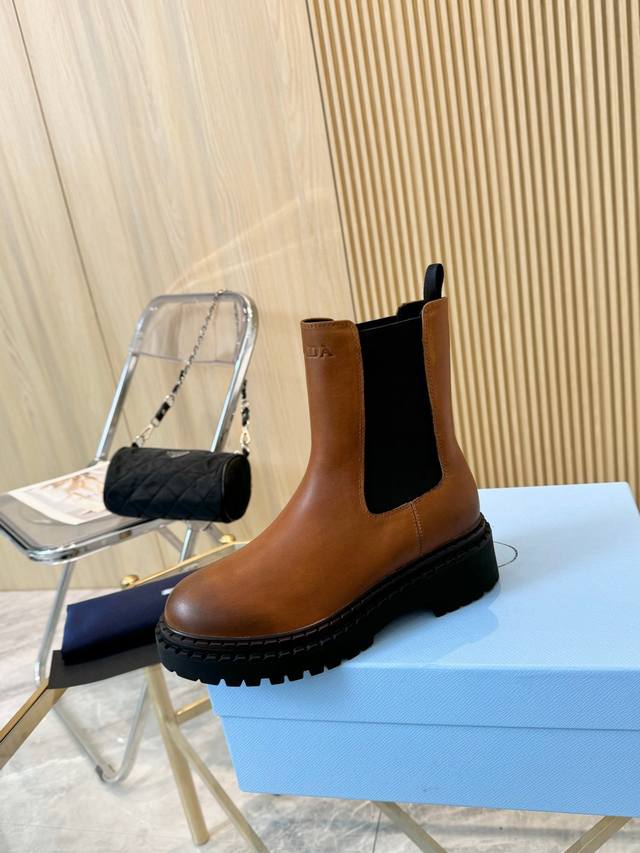 Fashion Never Compromises! Prada Genuine Leather Platform Riding Boots, Slip-on Dr. Martens Stunningly Arrive! These boots are crafted from top-grade distressed leather, offering an exceptionally luxurious feel and unparalleled comfort. The distinctive peep-toe platform design adds a touch of sophistication! Not only do they elongate your legs, but they also enhance your unique aura. Whether strolling the streets or attending a party, they are the perfect companion. Pair them with skinny jeans for a polished look; with a skirt for a cool and playful vibe. Every stitch embodies Prada's exquisite craftsmanship and dedication. Wearing them will make you the center of attention, showcasing your unique charm. Don't hesitate any longer, own these irresistibly stylish boots! Material: Vintage Distressed Leather Lining: Breathable Leather Lining + Leather Insole Sole: Double-Layer Peep-Toe Rubber Sole Sizes: Standard Sizes 35-41