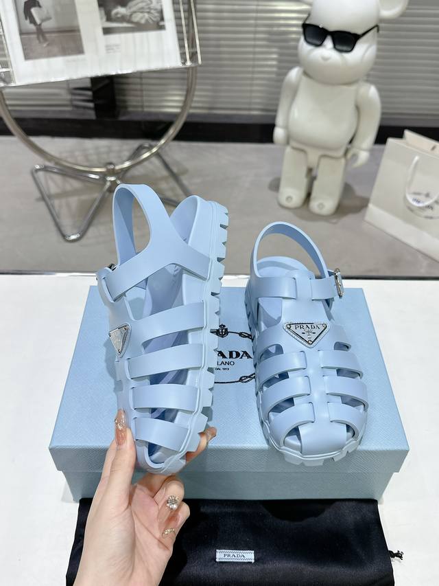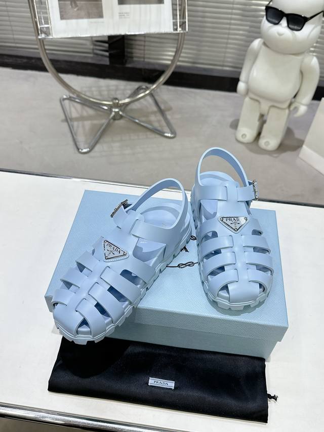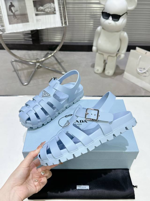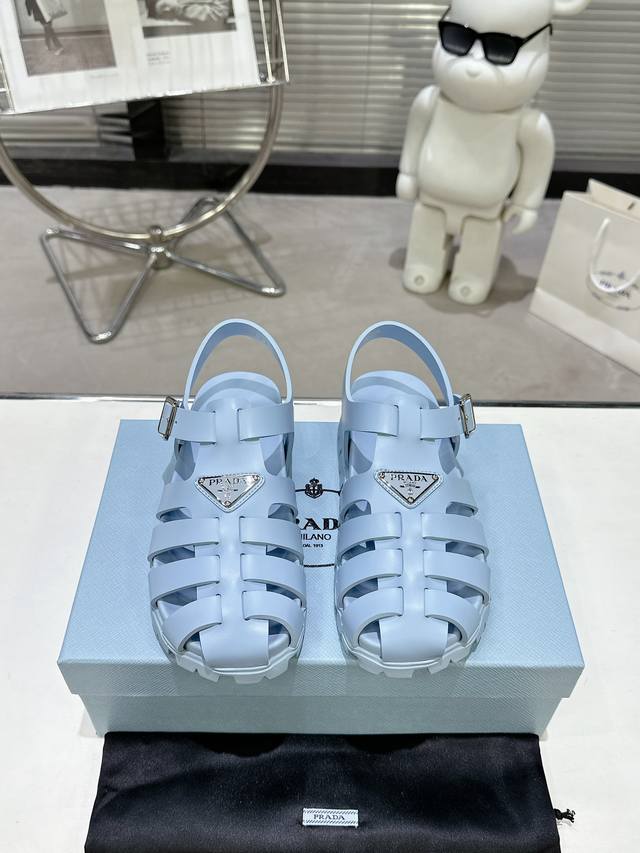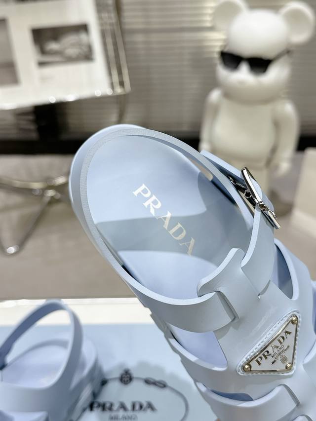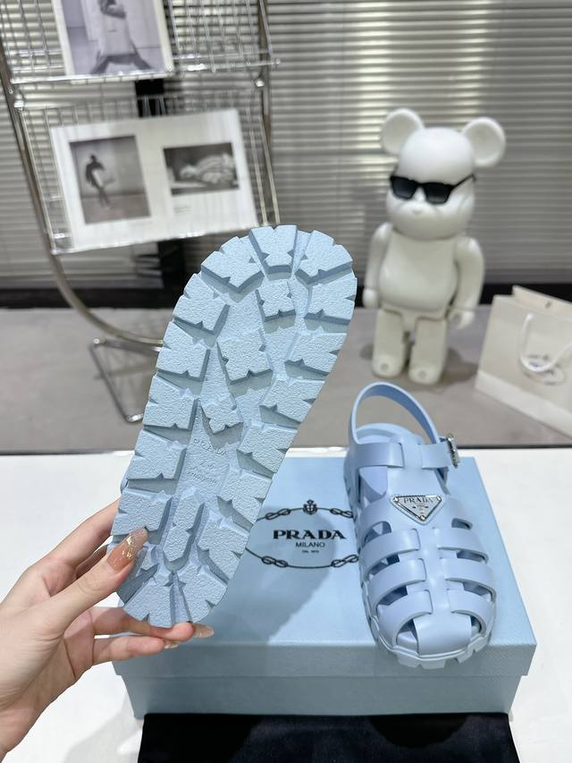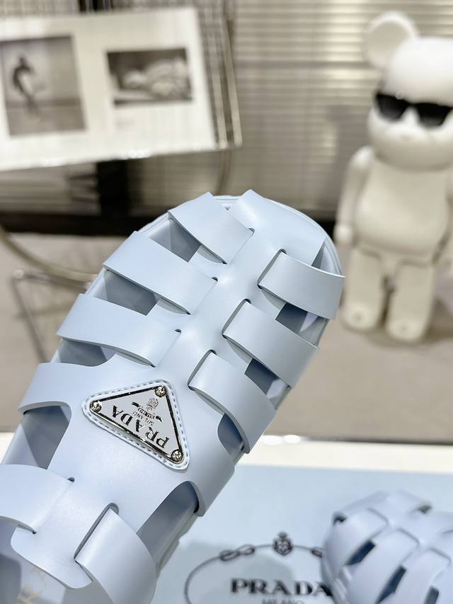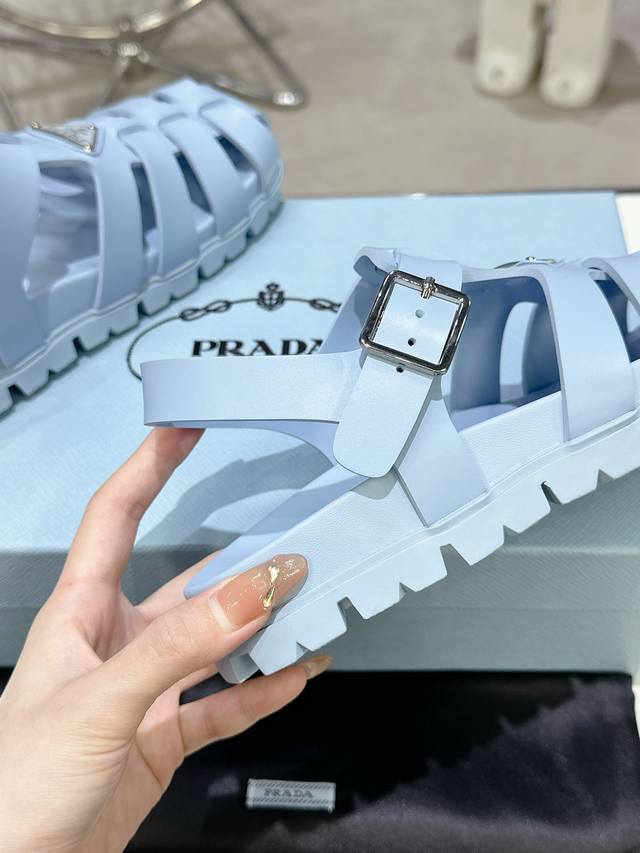 Flat Prada Spring/Summer New Sandals - Classic Triangle Buckle Sandals - Upgraded for a balance of comfort and style. Round toe design to suit different styles. Upper: Original custom material. Sheepskin insole. Outsole: Original molded non-slip outsole. Sizes: 35-40