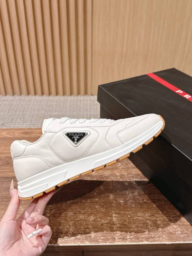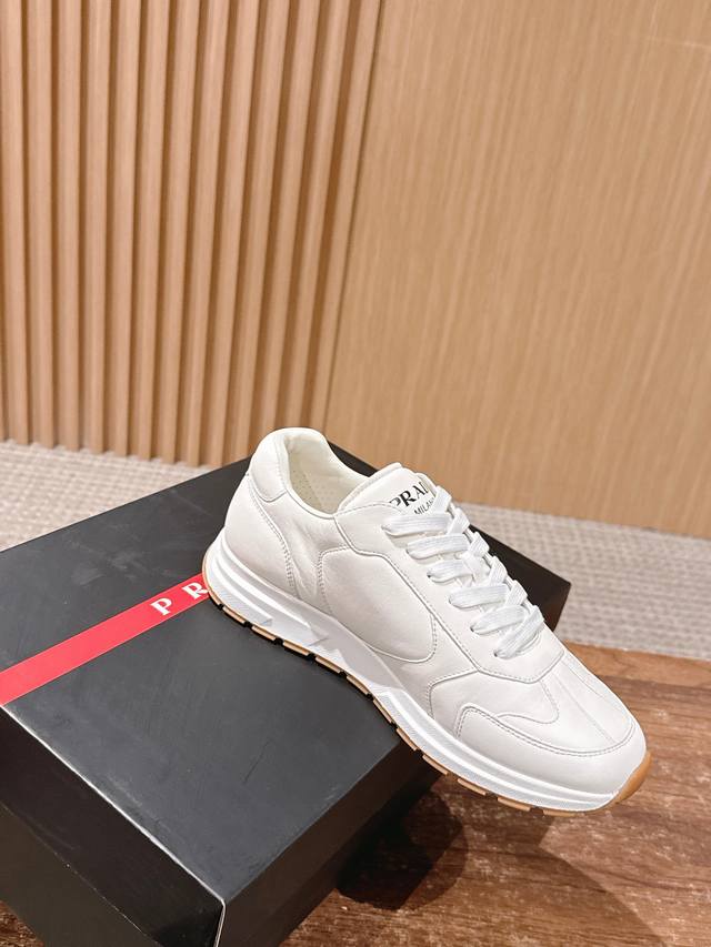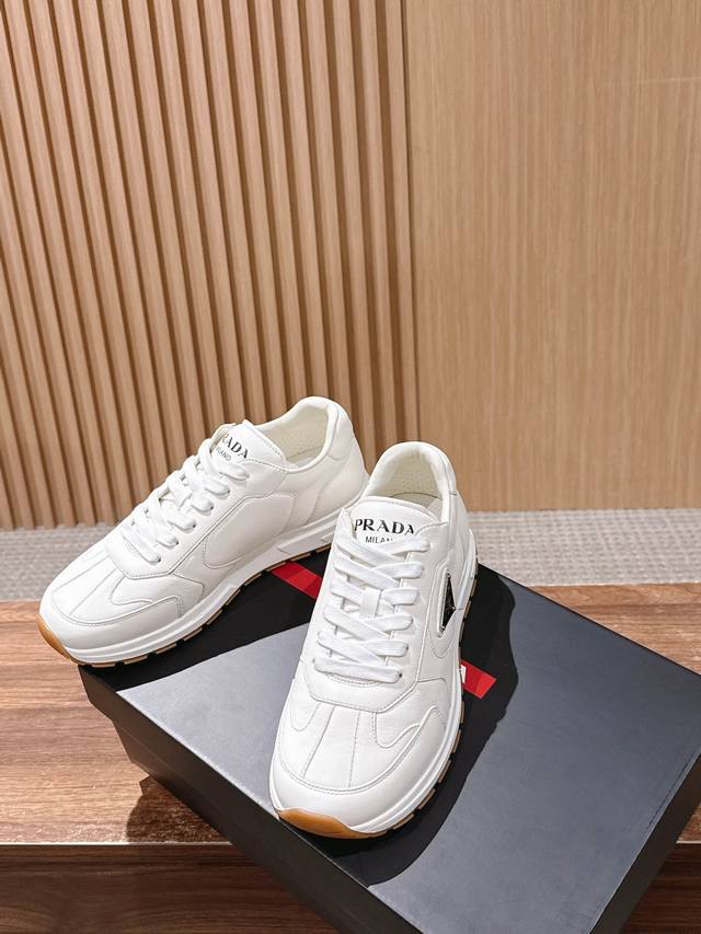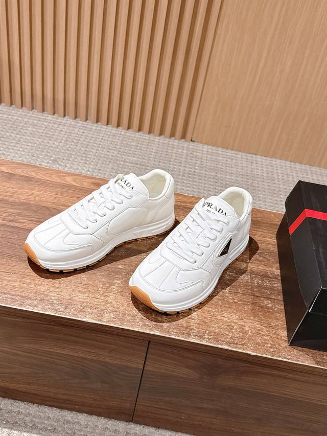 Full Leather-# Prada Men's Triangle Logo Casual Sports Shoes, Nylon + Suede Material, Stylish and Versatile, 4.5cm Thick Sole, Size: 39-44, 38, 45. Custom orders are not accepted.
