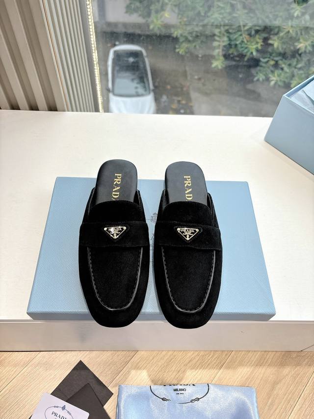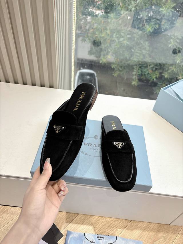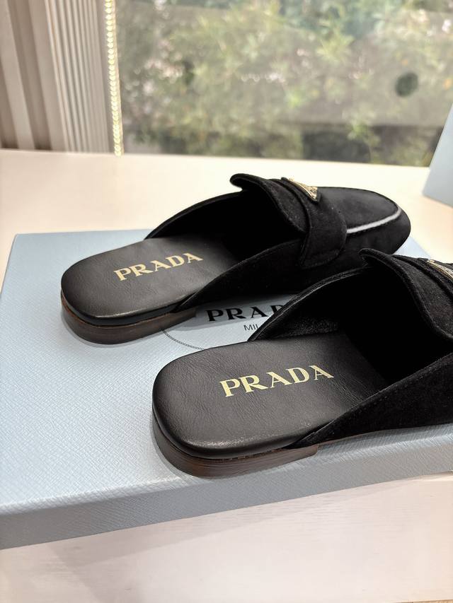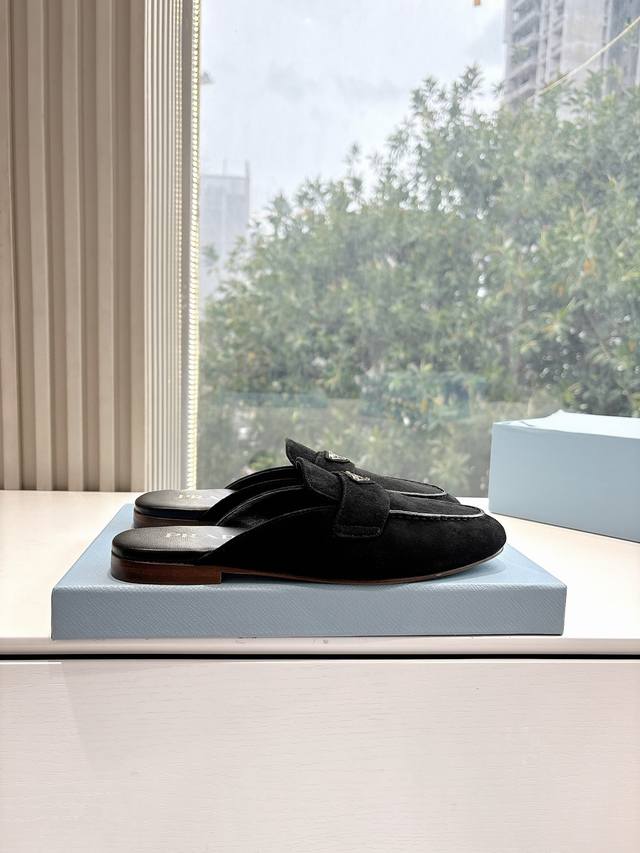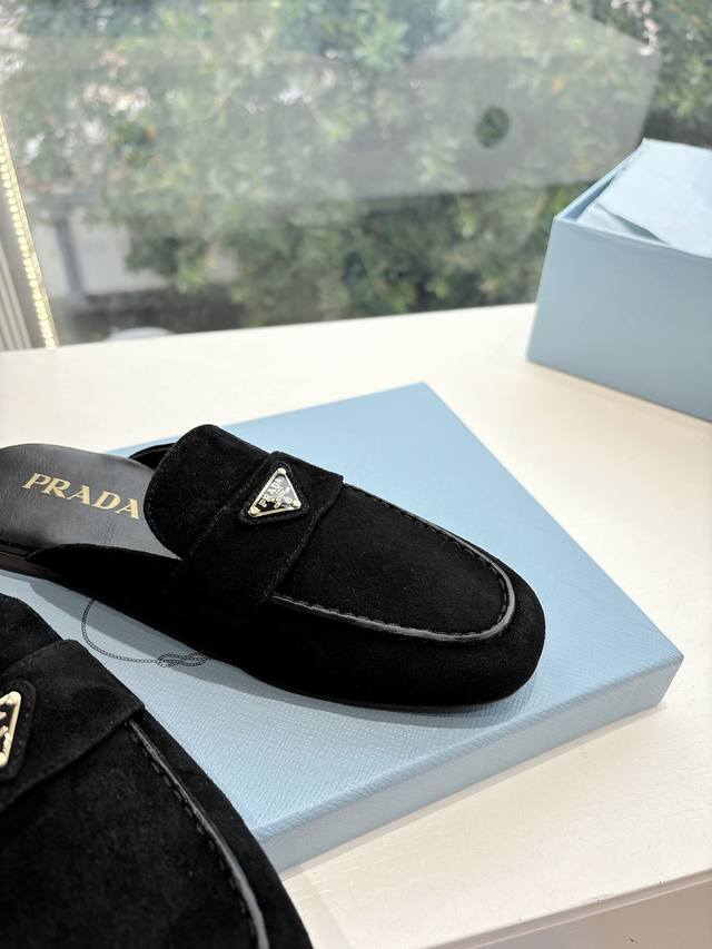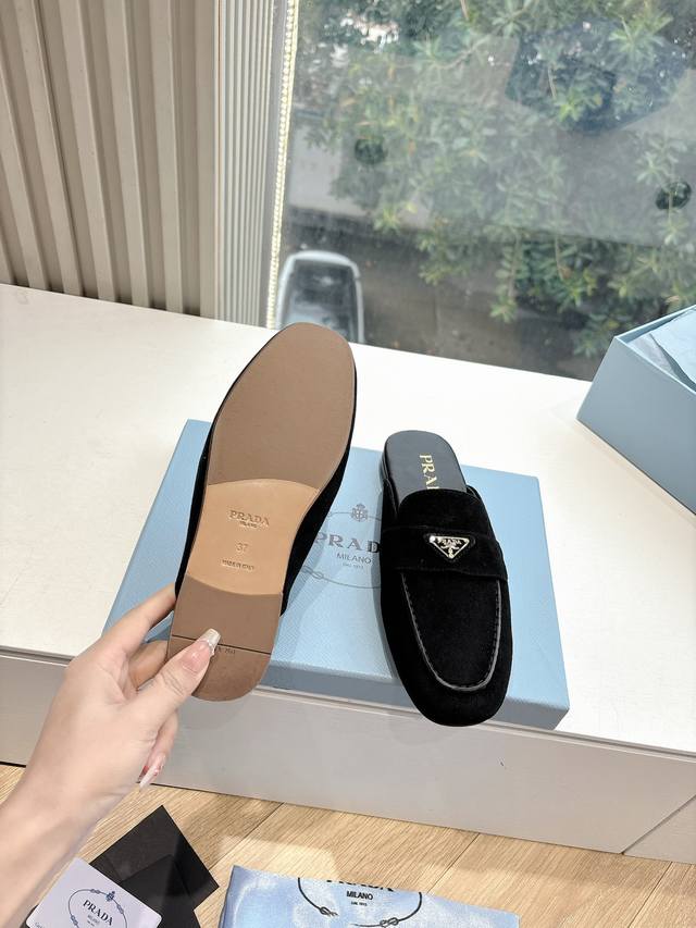 G0286 Prada 2025 Spring/Summer New Mary Jane Ballet Flat Mules with Closed Toe - Retro and stylish upper, making the shoes lightweight and comfortable. Vibrant colors cater to various fashionistas! The iconic metal triangle logo flip-flop design paired with a vintage beach sandal style