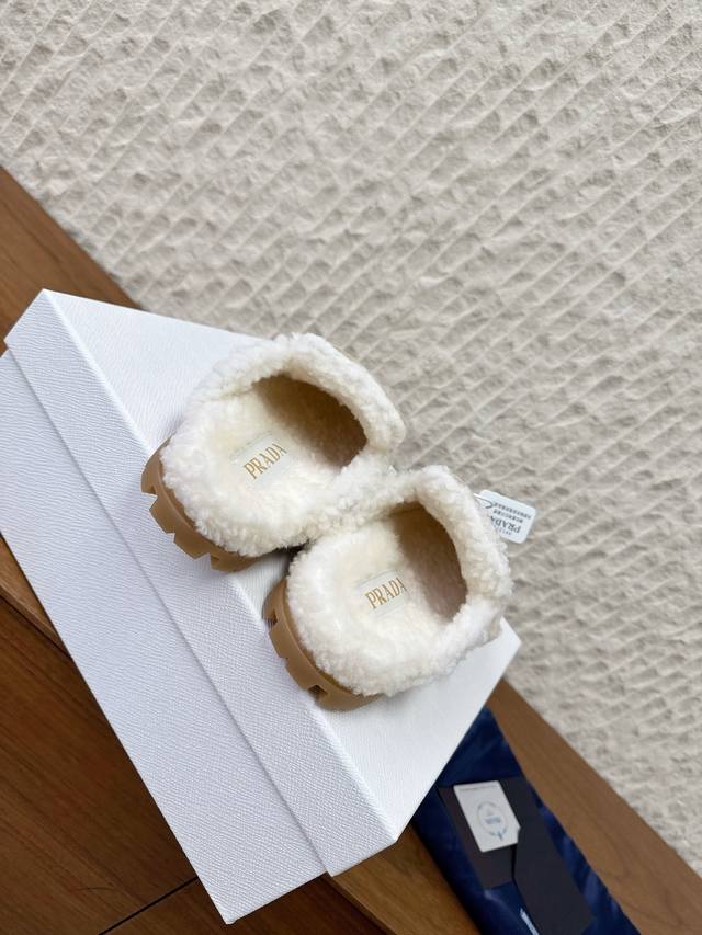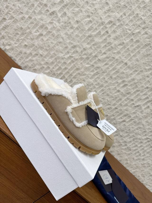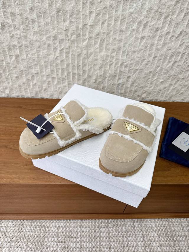G292 Prada 25Ss Autumn/Winter New Triangle Logo Furry Slippers