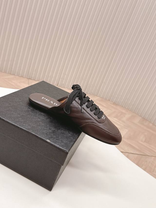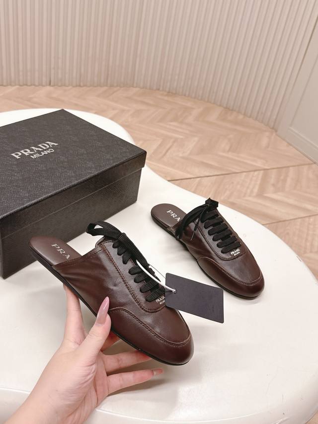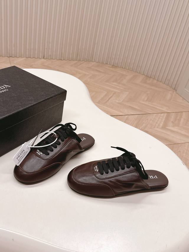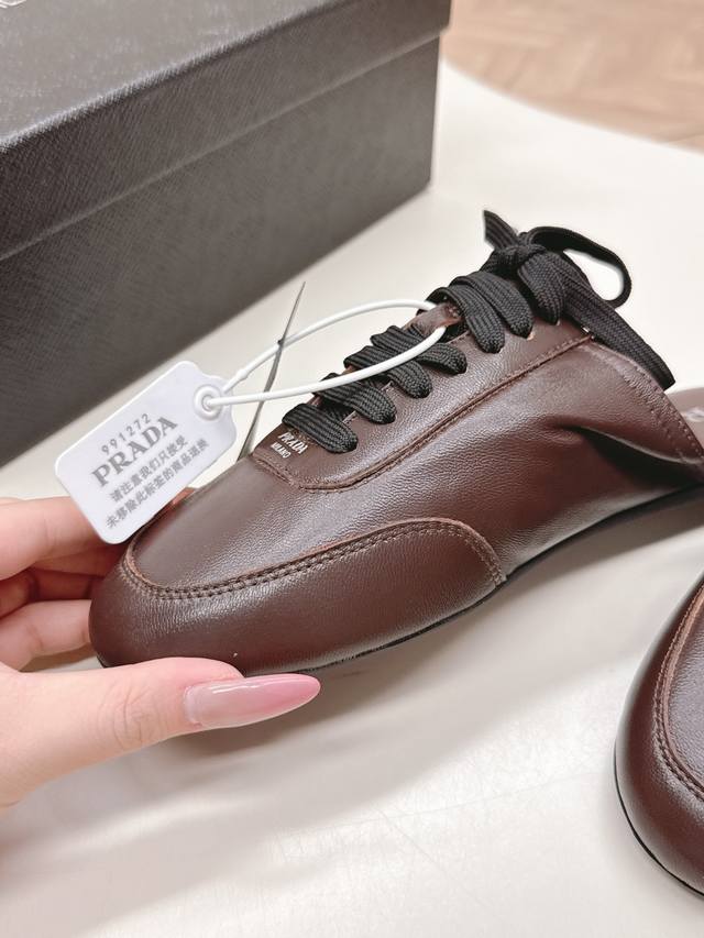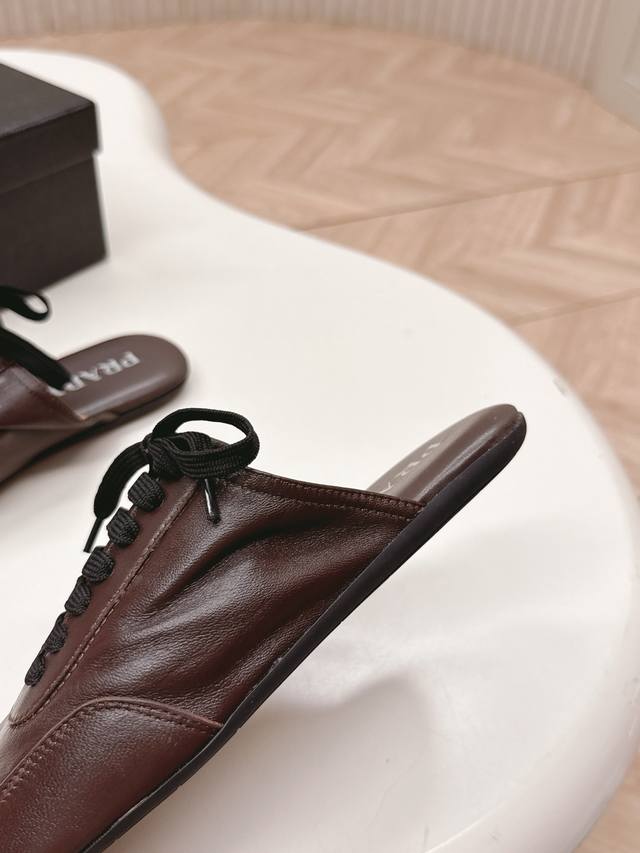 Half-slipper style DDD Prada p brand 26Ssfw ~ New style lace-up Mary Jane casual shoes ballet flats small leather shoes half-slippers, understated luxury slip-on shoes, the perfect choice for the wealthy! DDD Soft rubber sole is known for its cloud-like feel ~ 100% comfort DDD Delicate suede upper, the shoe shape is very supportive, soft and textured! Full of high-end feel! DDD Upper: Original cowhide DDD Lining: Imported sheepskin DDD Sole: Original mold TPU DDD Size: 35-39 40.41 Custom orders are non-refundable DDD