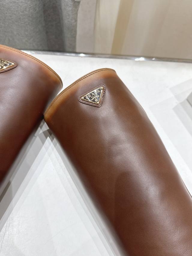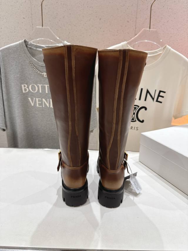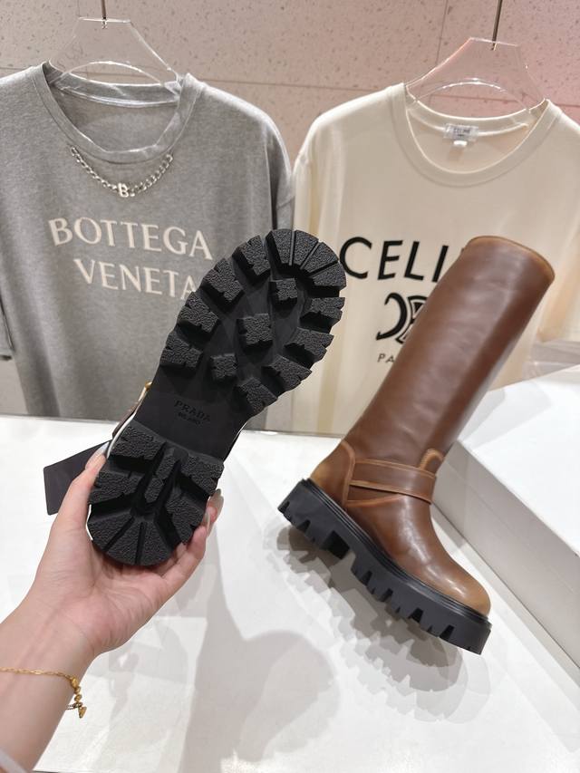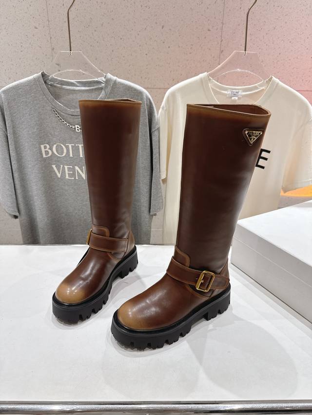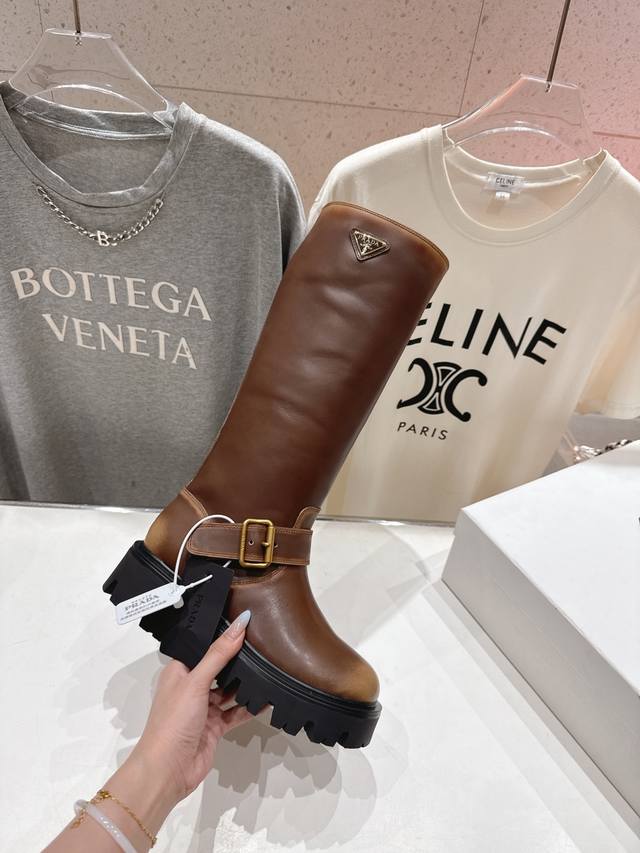Prada F029 2025Ss autumn and winter new triangle buckle thick-soled long boots Martin boots, a very durable