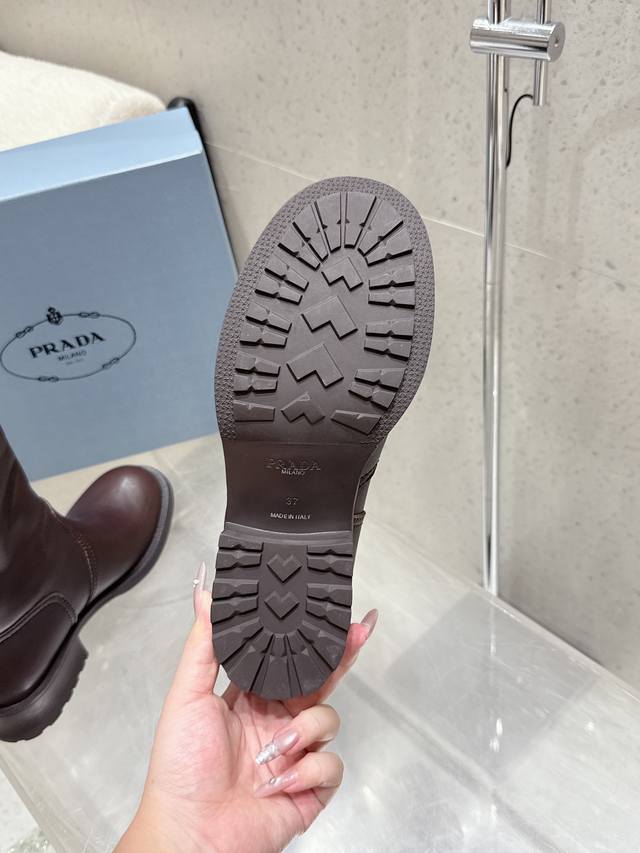. This winter collection is unavailable, and it's definitely this year's hot item! They're so pretty! Prada boots are truly amazing! They're so stylish and slimming, and the leather is super soft, comfortable, and premium. The entire collection uses a variety of imported materials: waxed calfskin, cowhide lining. Sizes: 35-41, 40, 41. Made to order, no returns or exchanges.