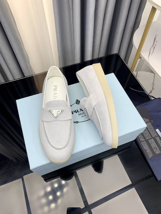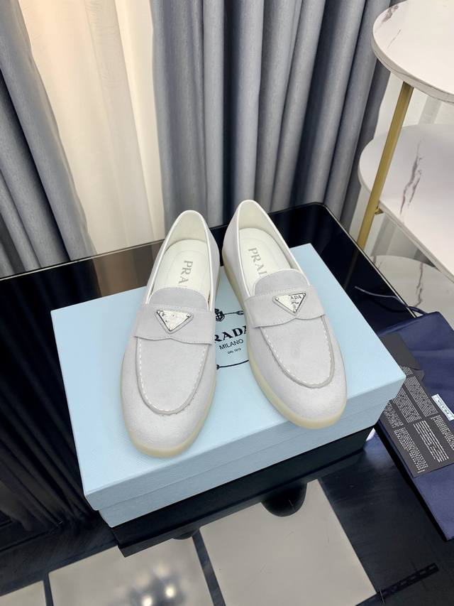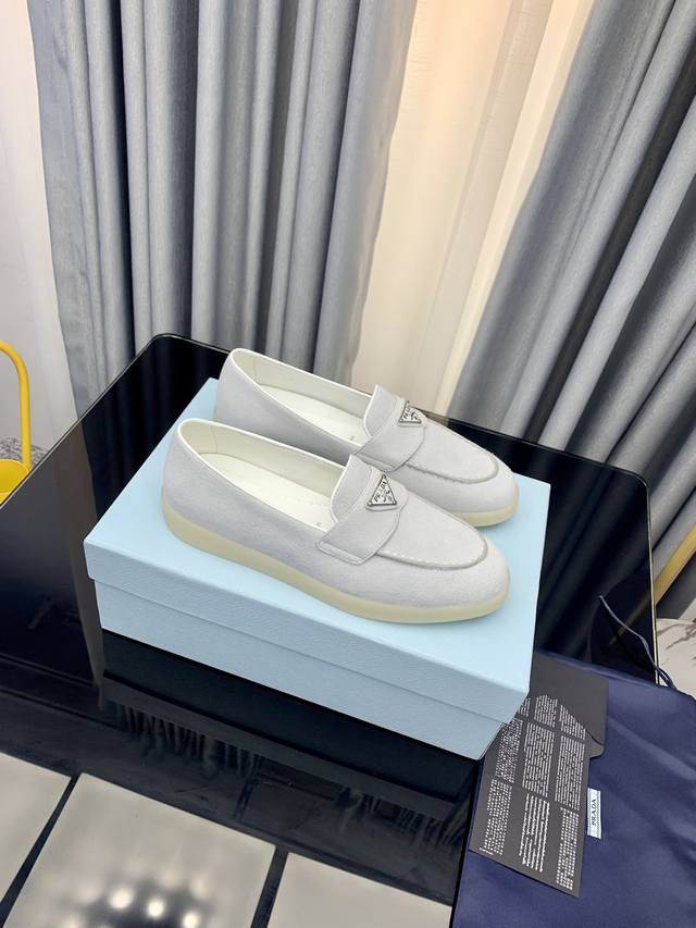 High-quality factory direct! Original product! Top-tier version Prada Ss Summer New Saint-Tropez Series Casual Shoes Classic Triangle Logo Unisex Loafers New Hot Item~