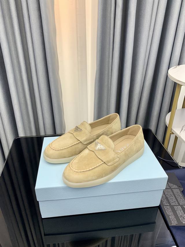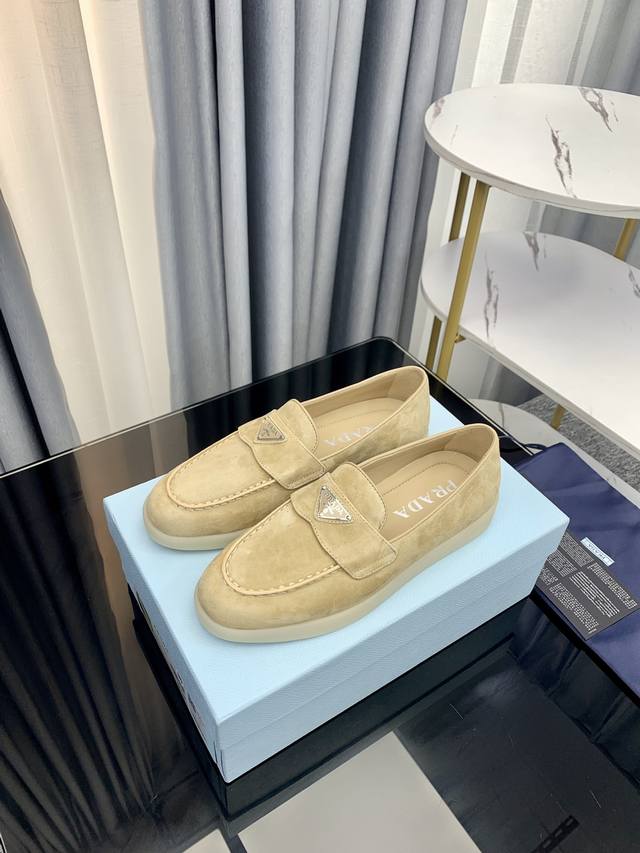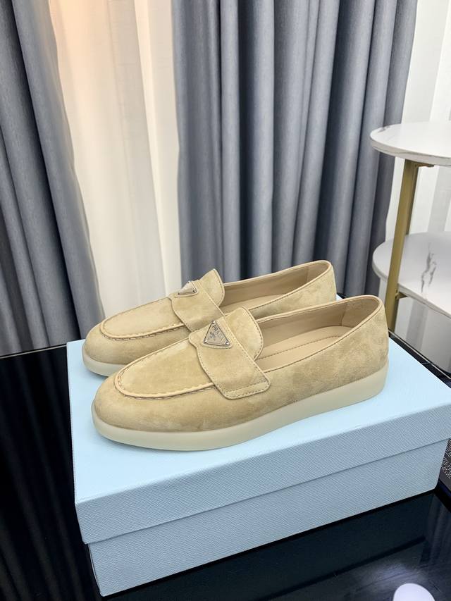 High-quality factory direct! Original product! Top-tier version Prada Ss Summer New Saint-Tropez Series Casual Shoes Classic Triangle Logo Unisex Loafers New Hot Item~