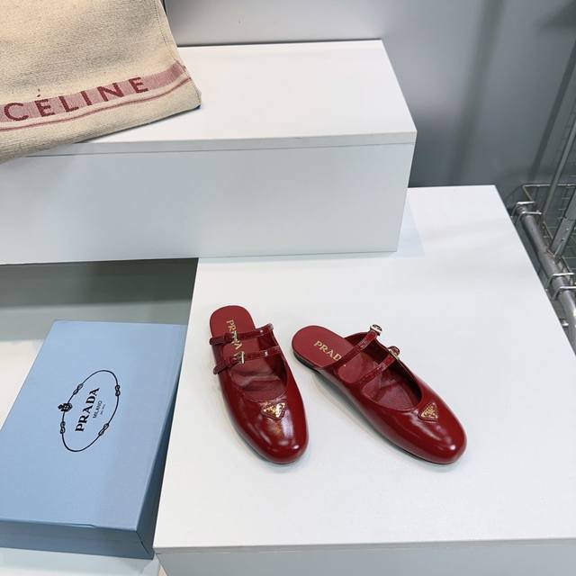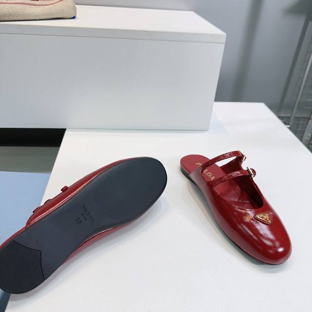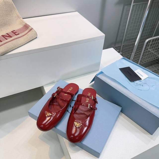 High-quality factory direct! Top-quality Prada classic triangle logo Mary Jane flat mules with a single buckle!