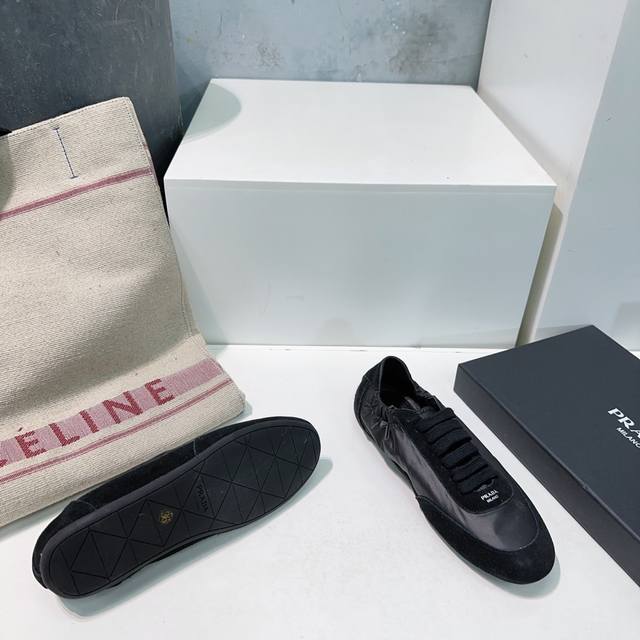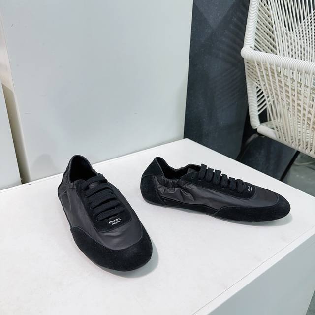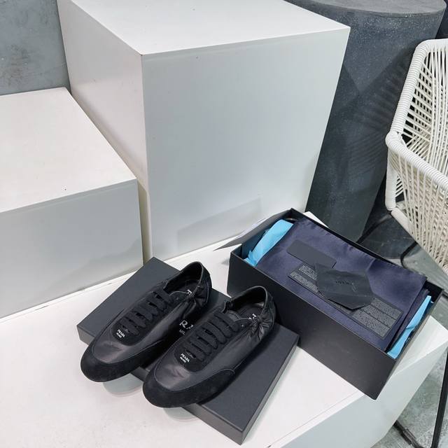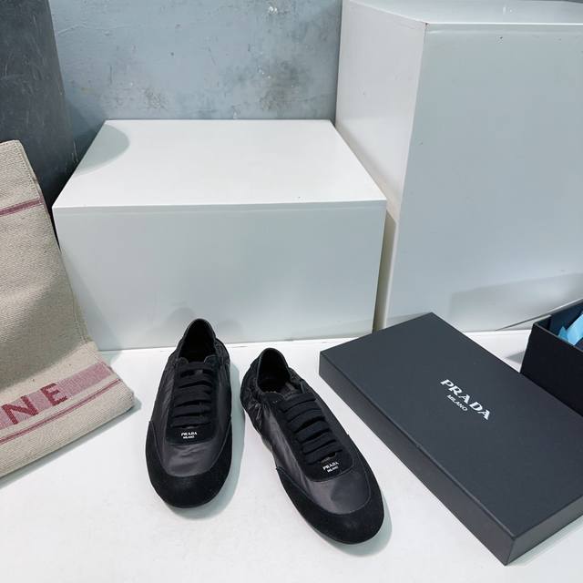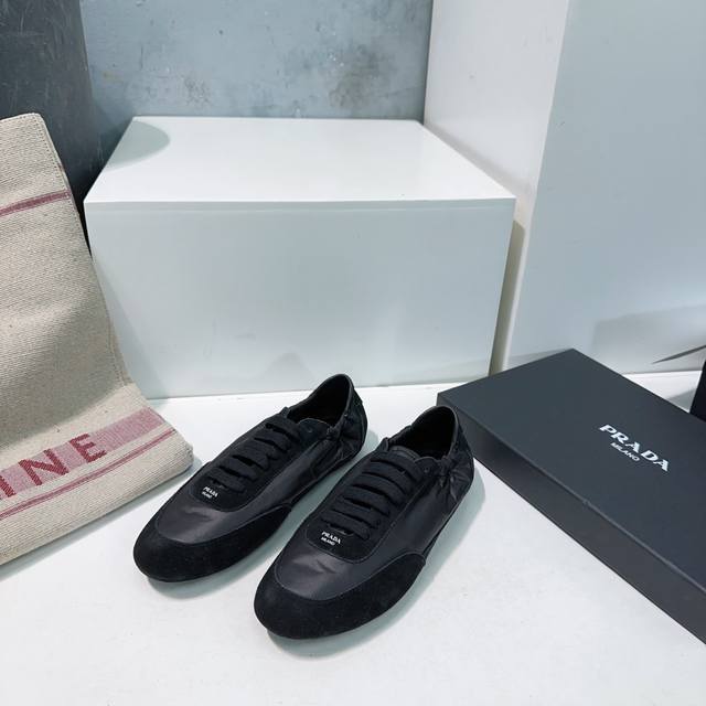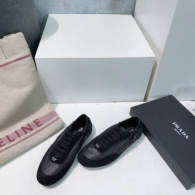 High-quality factory direct! Top-quality Prada Spring/Summer 2025 German Training Shoes/Casual Shoes! Textured suede upper, soft and supple lambskin lining! Thick lambskin insole for unparalleled comfort, support, and a snug fit! Excellent fit, lightweight, comfortable, and practical casual shoe that makes you look taller and your legs longer! Clean and refreshing spring/summer color scheme, perfect for all seasons, easily paired with skirts or pants. Imported suede upper, original nylon fabric, lambskin lining, original molded rubber outsole! Sizes: 35-40. Size 40 is custom-made and non-refundable. Comes with original packaging.