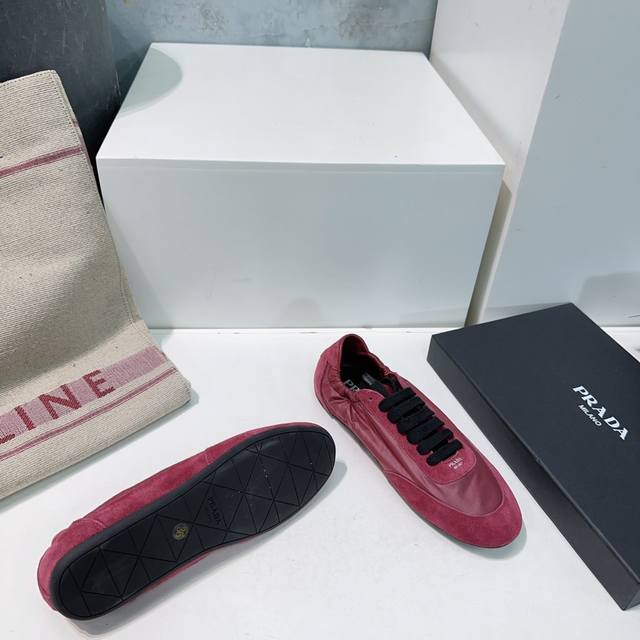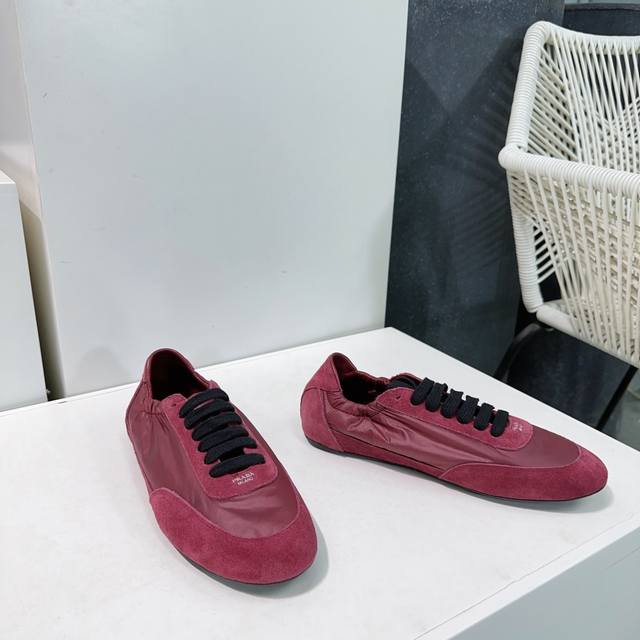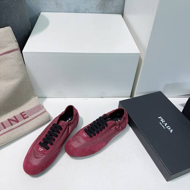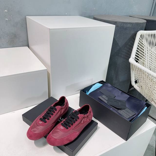 High-quality factory direct! Top-quality Prada Spring/Summer 2025 new German training shoes/casual shoes! The suede upper has a textured feel, and the inner lining is wrapped in soft, supple sheepskin! The insole is made of thick lambskin, providing unparalleled comfort, support, and a snug fit! The shoe shape offers excellent support, making it a lightweight, comfortable, and practical casual shoe that makes you look taller and your legs longer! The clean and refreshing spring/summer color scheme is suitable for all seasons and can be easily paired with skirts or pants. The upper is made of imported suede and original nylon fabric. The inner lining is sheepskin. The outsole is made to the original mold! Sizes: 35-40. Size 40 is custom-made and non-refundable. Comes with original packaging.