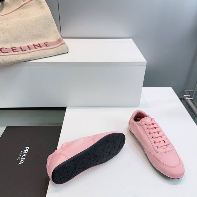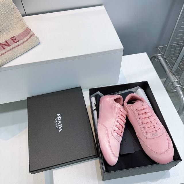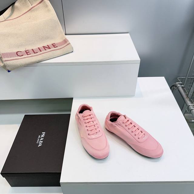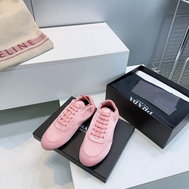 High-quality factory release! Top-quality Prada 2026 early spring runway new product, silk satin lightweight sneakers, German training shoes, casual shoes! These sneakers, which were revealed at the fashion week show, have become a hot seller on major online retailers worldwide. Simple, casual, and unrestrained, they showcase the beauty of denim. The entire shoe features a minimalist and stylish design, and is very lightweight and versatile! The upper is made of original imported silk and suede. The insole is made of sheepskin. Original molded sole. Sizes: 35-40. Size 40 is custom-made and non-refundable. Comes with original packaging.