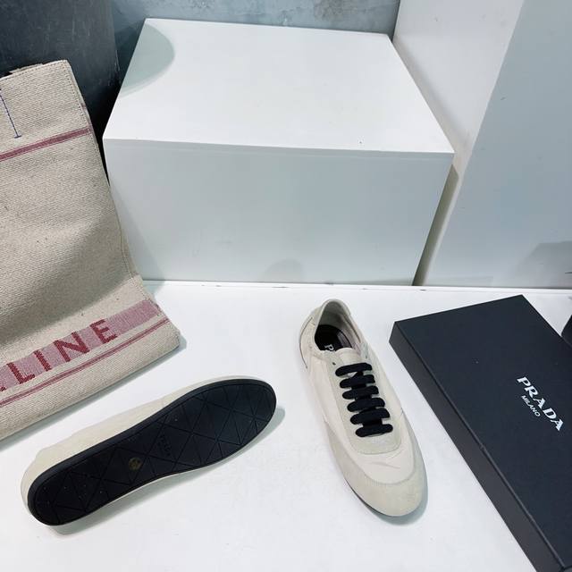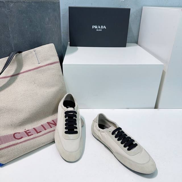 High-quality factory! Top-quality Prada Spring/Summer 2025 German Training Shoes/Casual Shoes! The suede upper has a textured feel, and the inner lining is wrapped in soft, supple sheepskin! The thickened lambskin insole provides unparalleled comfort, support, and a snug fit! The shoe shape offers excellent support, making it a lightweight, comfortable, and practical casual shoe that makes you look taller and your legs longer! The clean and refreshing spring/summer color scheme is suitable for all seasons and can be easily paired with skirts or pants. The upper is made of imported suede and original nylon fabric. The inner lining is sheepskin. The outsole is made to the original mold! Sizes: 35-40. Size 40 is custom-made and non-refundable. Comes with original packaging.