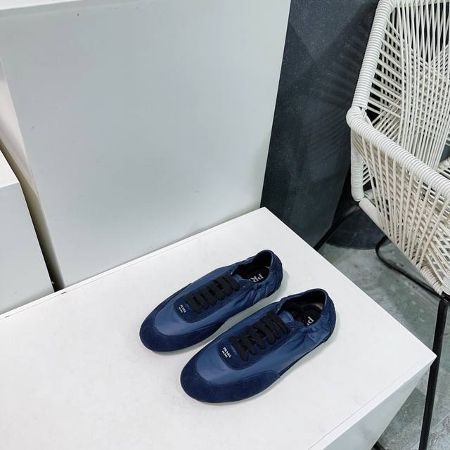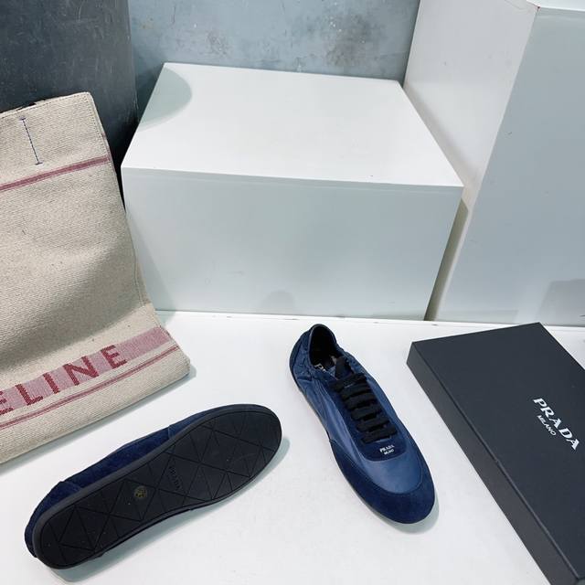High-quality factory! Top-quality Prada Spring/Summer 2025 German Training Shoes/Casual Shoes! The suede upper has a textured feel, and the inner lining is wrapped in soft, supple sheepskin! The thickened lambskin insole provides unparalleled comfort, support, and a snug fit! The shoe shape offers excellent support, making it a lightweight, comfortable, and practical casual shoe that makes you look taller and your legs longer! The clean and refreshing spring/summer color scheme is suitable for all seasons and can be easily paired with skirts or pants. The upper is made of imported suede and original nylon fabric. The inner lining is sheepskin. The outsole is made to the original mold! Sizes: 35-40. Size 40 is custom-made and non-refundable. Comes with original packaging.