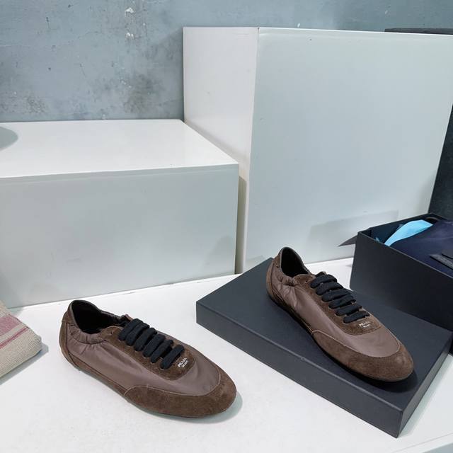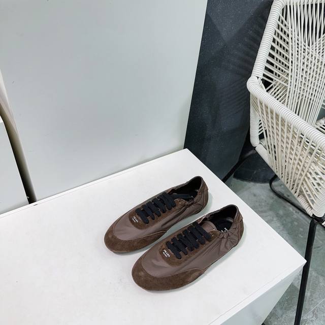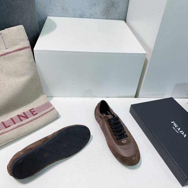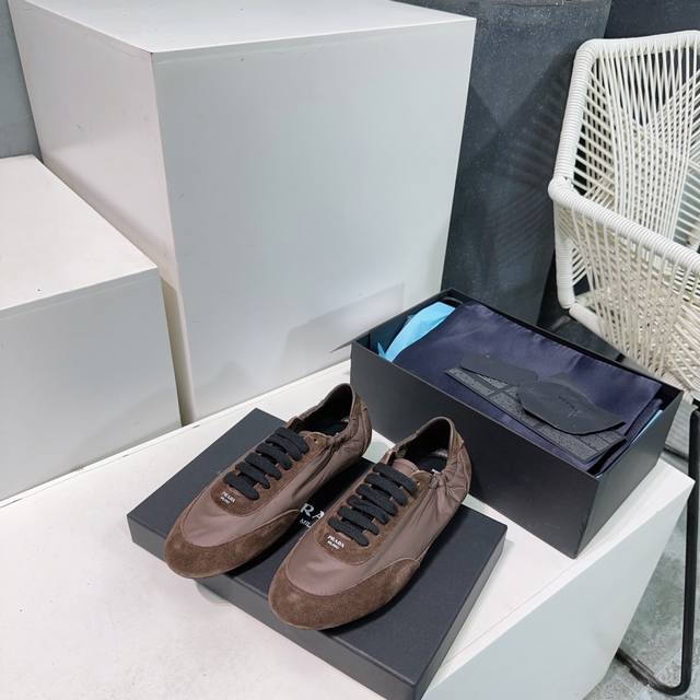 High-quality factory! Top-quality Prada Spring/Summer 2025 German Training Shoes/Casual Shoes! The suede upper has a textured feel, and the inner lining is wrapped in soft, supple sheepskin! The thickened lambskin insole provides unparalleled comfort, support, and a snug fit! The shoe shape offers excellent support, making it a lightweight, comfortable, and practical casual shoe that makes you look taller and your legs longer! The clean and refreshing spring/summer color scheme is suitable for all seasons and can be easily paired with skirts or pants. The upper is made of imported suede and original nylon fabric. The inner lining is sheepskin. The outsole is made to the original mold! Sizes: 35-40. Size 40 is custom-made and non-refundable. Comes with original packaging.