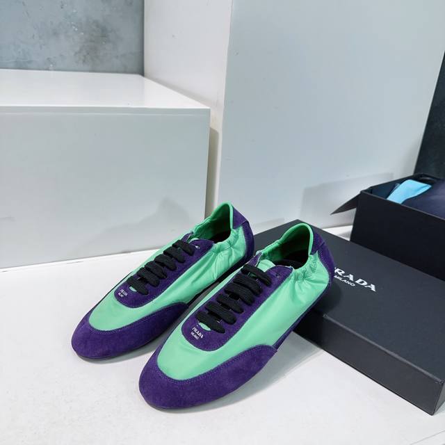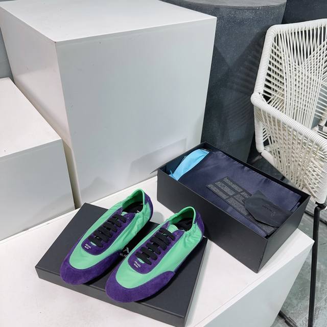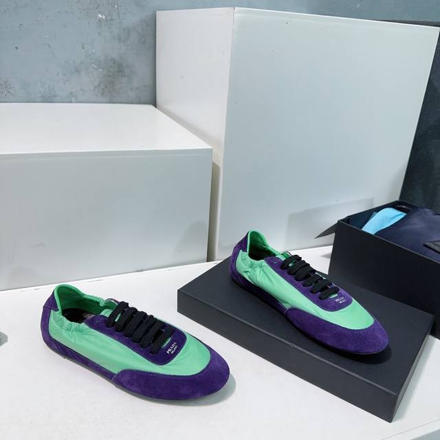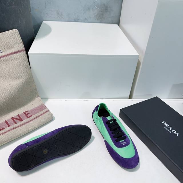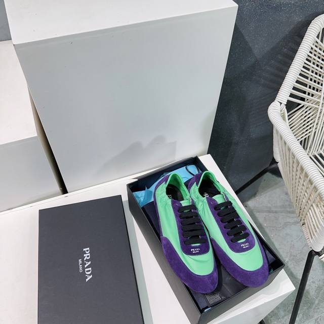 High-quality factory! Top-quality Prada Spring/Summer 2025 new German training shoes/casual shoes! The upper is made of textured suede, and the inner lining is wrapped in soft, supple sheepskin! The insole is made of thick lambskin, providing unparalleled comfort, support, and a snug fit! The shoe shape offers excellent support, making it a lightweight, comfortable, and practical casual shoe that makes you look taller and your legs longer! The clean and refreshing spring/summer color scheme is suitable for all seasons and can be easily paired with skirts or pants. The upper is made of imported suede and original nylon fabric. The inner lining is sheepskin. The outsole is made with original molds! Sizes: 35-40. Size 40 is custom-made and non-refundable. Comes with original packaging.