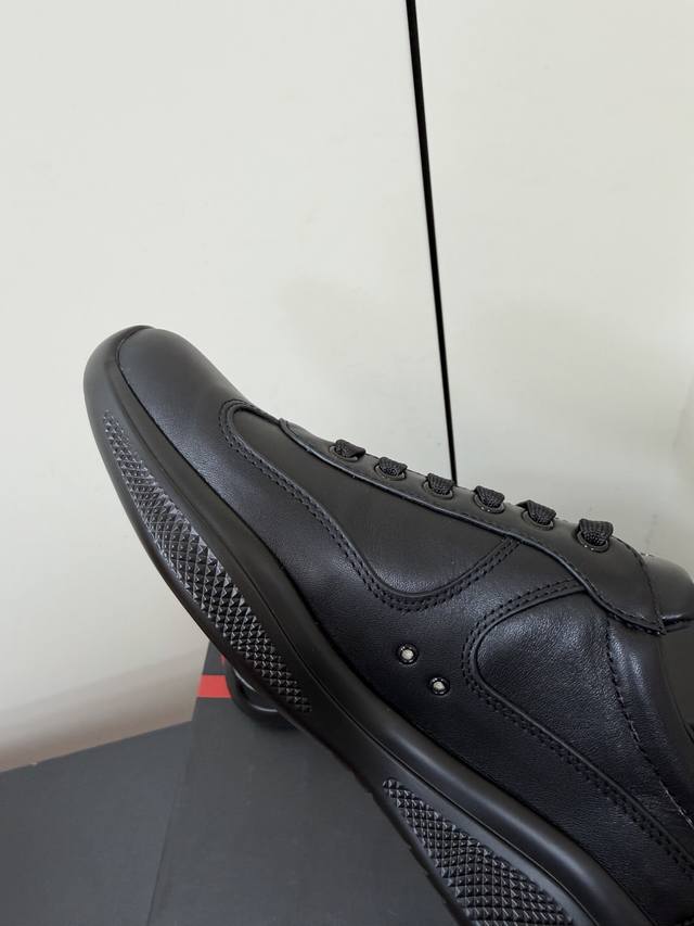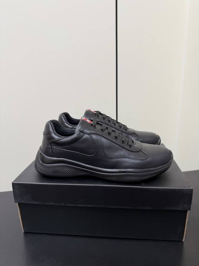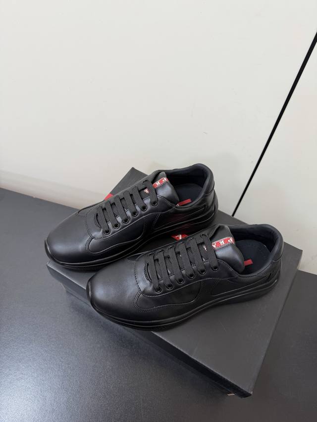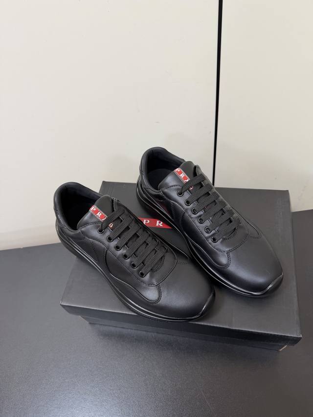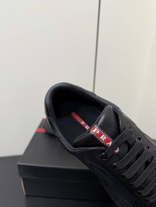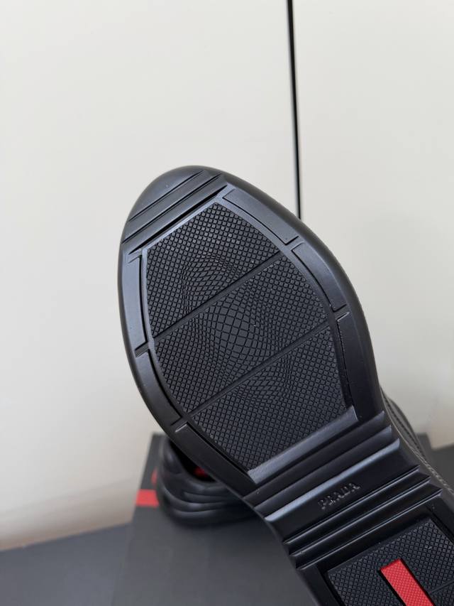 High-quality Prada 25 America's Cup series couple casual sneakers. Original purchase and re-production. These patent leather sneakers feature Bike fabric inlays, inspired by classic aesthetics. The tongue and sole are adorned with the distinctive Prada Linea Rossa logo, further enhancing the style. Comes with exquisite boutique packaging. Material: Original custom imported top-grain cowhide. Lining: Original imported breathable mesh. Outsole: Original molded anti-slip TPU material. Size: 35-45 (Women's size 41.42 custom-made, Men's size 46 custom-made).