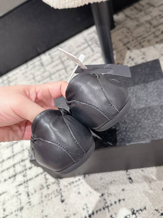 High-quality Prada 25 (latest runway casual running shoe) - This running shoe, resembling a ballet flat, is frequently seen on the runway. The soft leather and Prada's exclusive nylon material provide exceptional lightness and comfort. It's a retro-inspired piece that pairs perfectly with both trendy new items and a distressed vintage look. Upper: Imported soft sheepskin; Lining: Unlined sheepskin insole; Outsole: Original thin sole; Size: #35-41 (40.41 is custom-made and non-refundable).