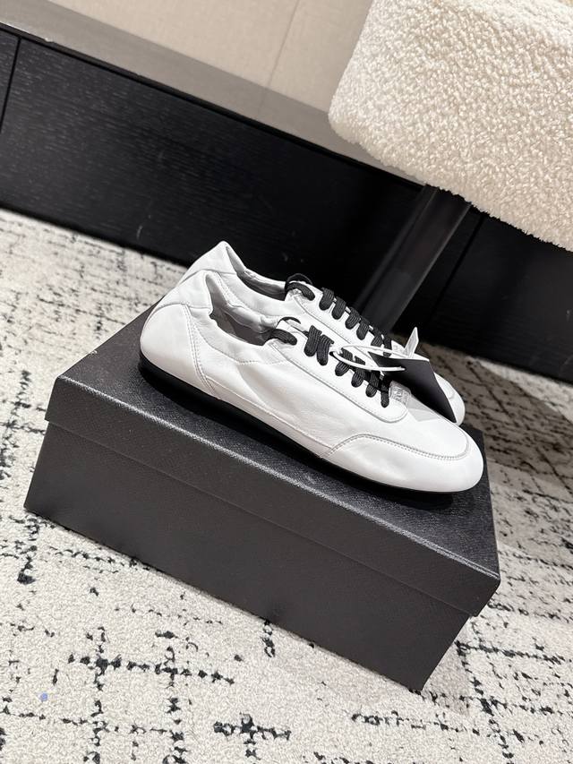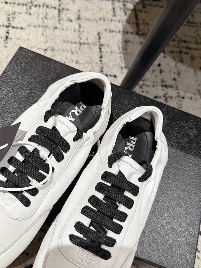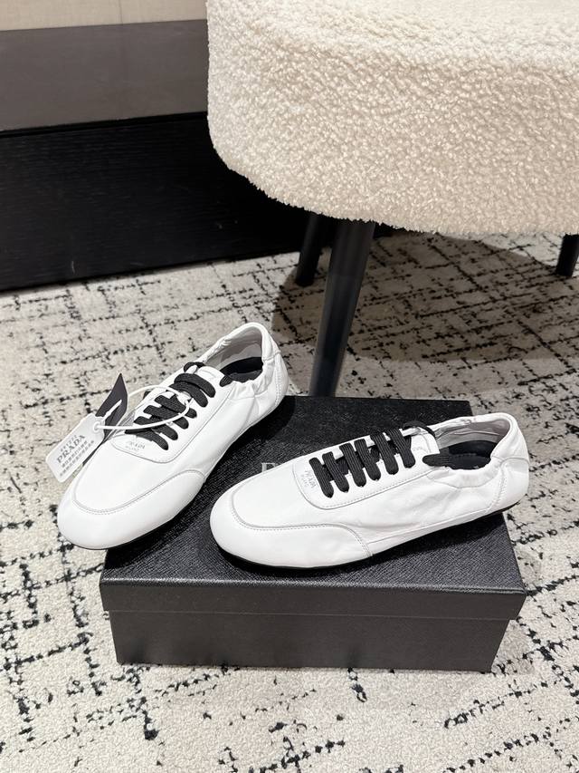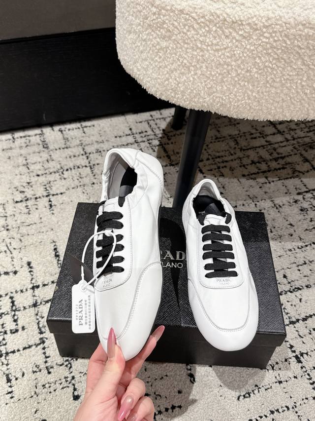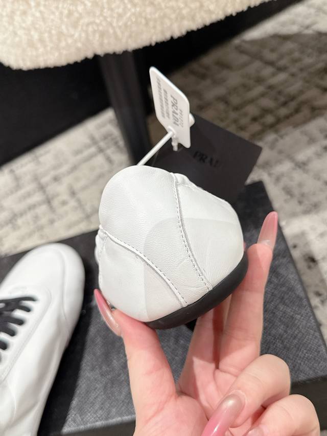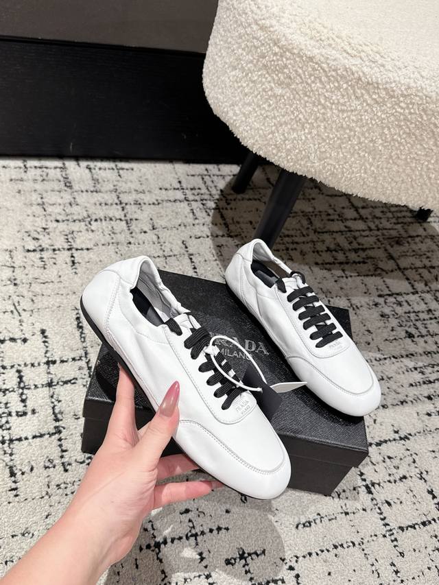High-quality Prada 25 (latest runway casual running shoe) - This running shoe, resembling a ballet flat, is frequently seen on the runway. The soft leather and Prada's exclusive nylon material provide exceptional lightness and comfort. It's a retro-inspired piece that pairs perfectly with both trendy new items and a distressed vintage look. Upper: Imported soft sheepskin; Lining: Unlined sheepskin insole; Outsole: Original thin sole; Size: #35-41 (40.41 is custom-made and non-refundable).