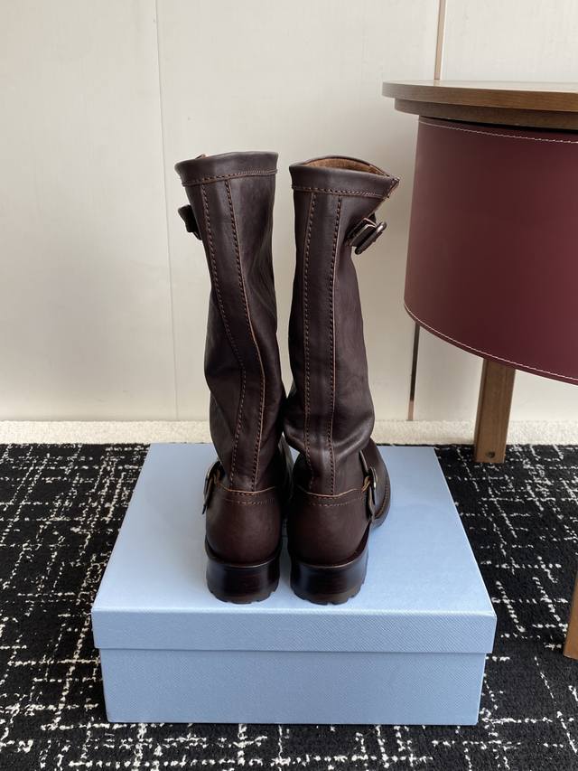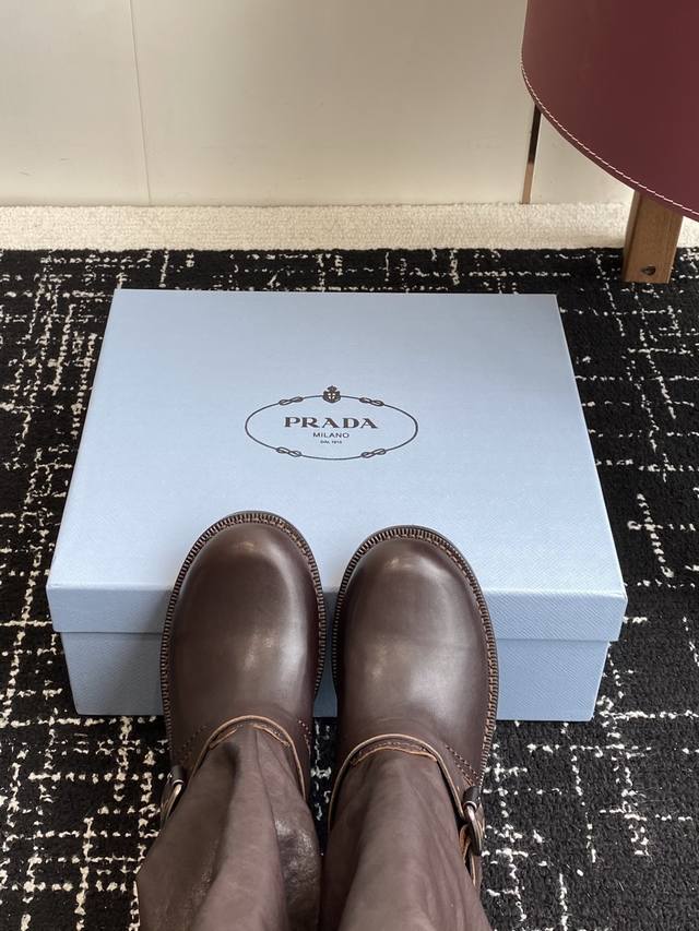 High-quality Prada 25Ss Autumn/Winter Retro Slouch Boots (Retail Quality). Stylish slouch boots with a unique style that everyone loves and is easy to wear. A must-have every year. The versatile and classic last is sure to win you over. Wearing them provides both height and a casual look, simple and stylish. Made with imported washed calfskin leather, soft and delicate shearling lining and insole for comfortable wear. Italian genuine leather outsole with non-slip rubber sole. Size: #35-40. Size 40 is custom-made and non-refundable.