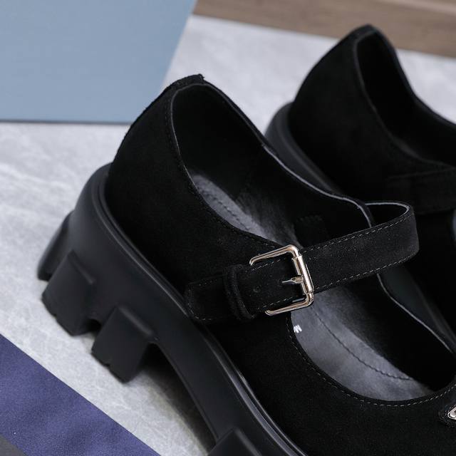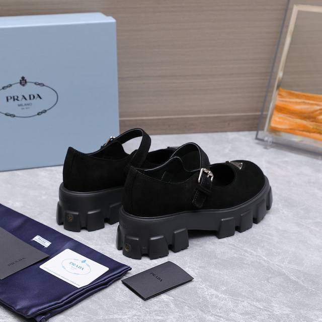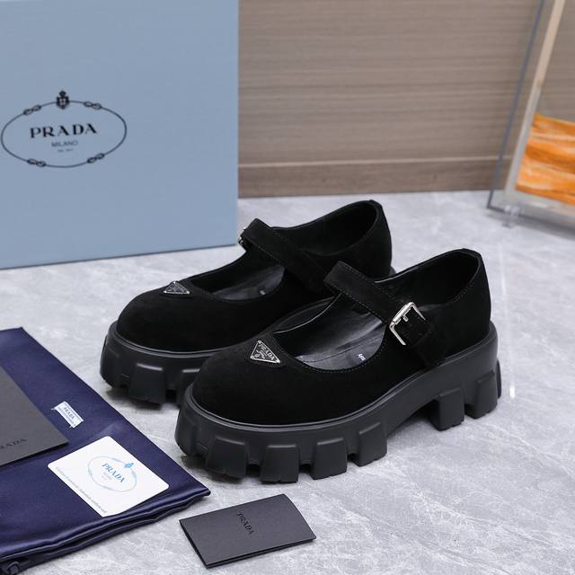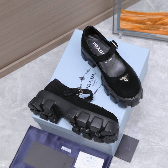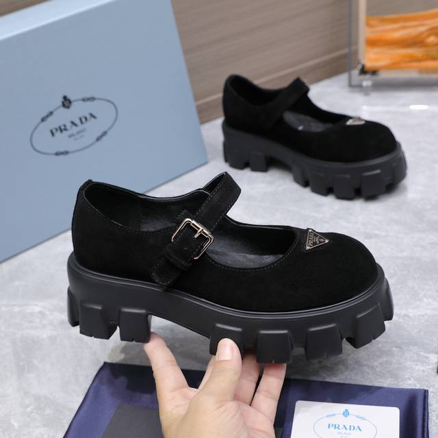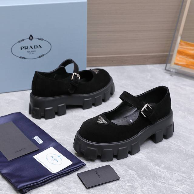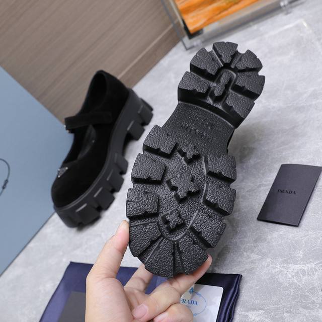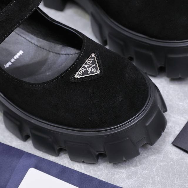 High-quality Prada 25Ss new platform Mary Jane shoes. The retro, stylish, and avant-garde platform sole paired with a cowhide upper makes the shoes lightweight, comfortable, and vibrant in color, catering to various fashion-conscious individuals! The iconic logo print combined with the classic beach sandal design ensures every element is on point! The shoes are lightweight, comfortable, and vibrant in color, catering to various fashion-conscious individuals! Upper: Open-edge cowhide suede; Lining: Cowhide; Outsole: Original molded outsole; Size: 35-40, 41 (custom orders are non-refundable and non-exchangeable); Price: [Price not specified]
