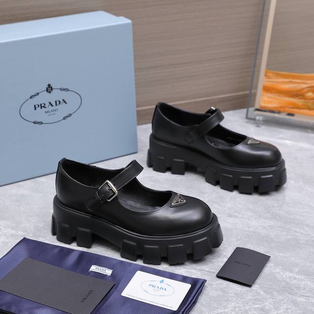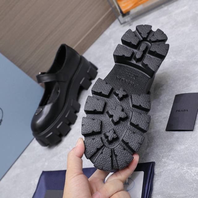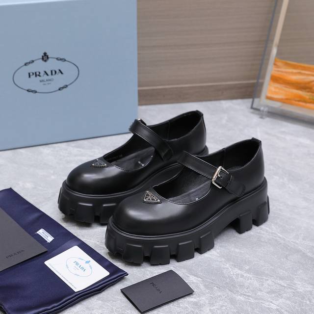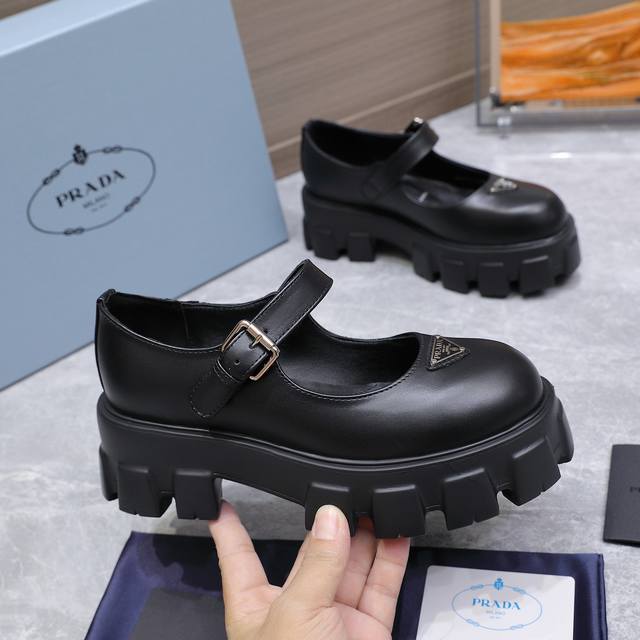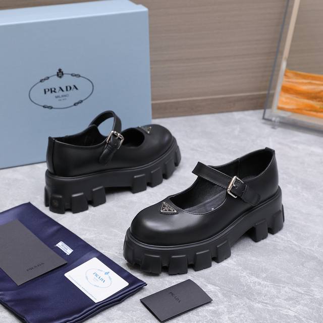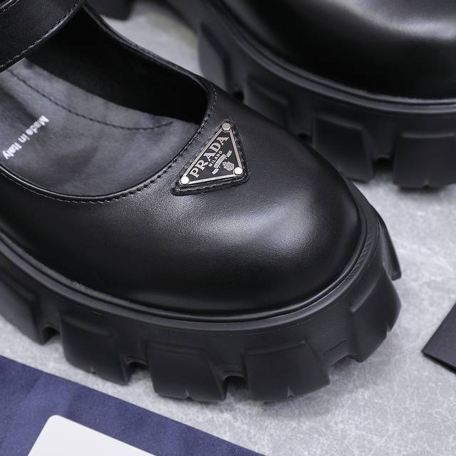 High-quality Prada 25Ss new platform Mary Jane shoes. The retro, stylish, and avant-garde platform sole paired with a cowhide upper makes the shoes lightweight, comfortable, and vibrant in color, catering to various fashion-conscious individuals! The iconic logo print combined with the classic beach sandal design ensures every element is on point! The shoes are lightweight, comfortable, and vibrant in color, catering to various fashion-conscious individuals! Upper: Open-edge cowhide suede; Lining: Cowhide; Outsole: Original molded outsole; Size: 35-40, 41 (custom orders are non-refundable and non-exchangeable); Price: [Price not specified]