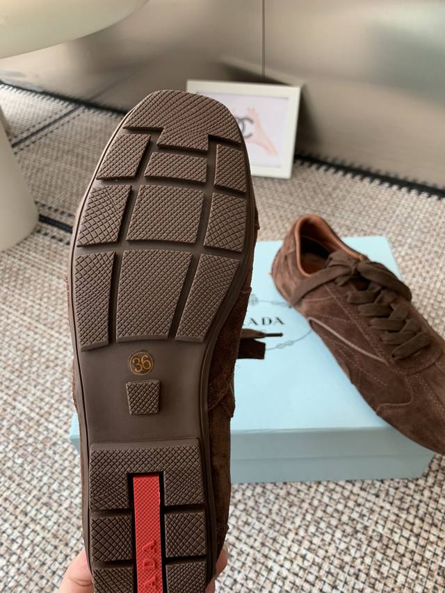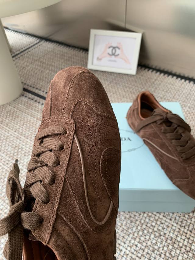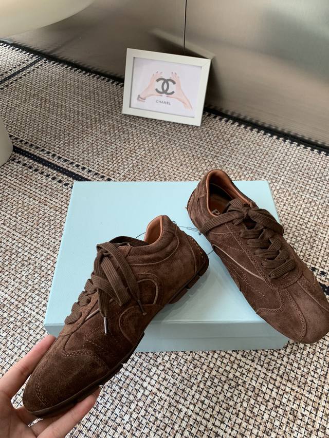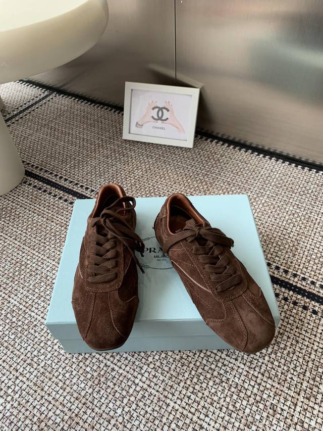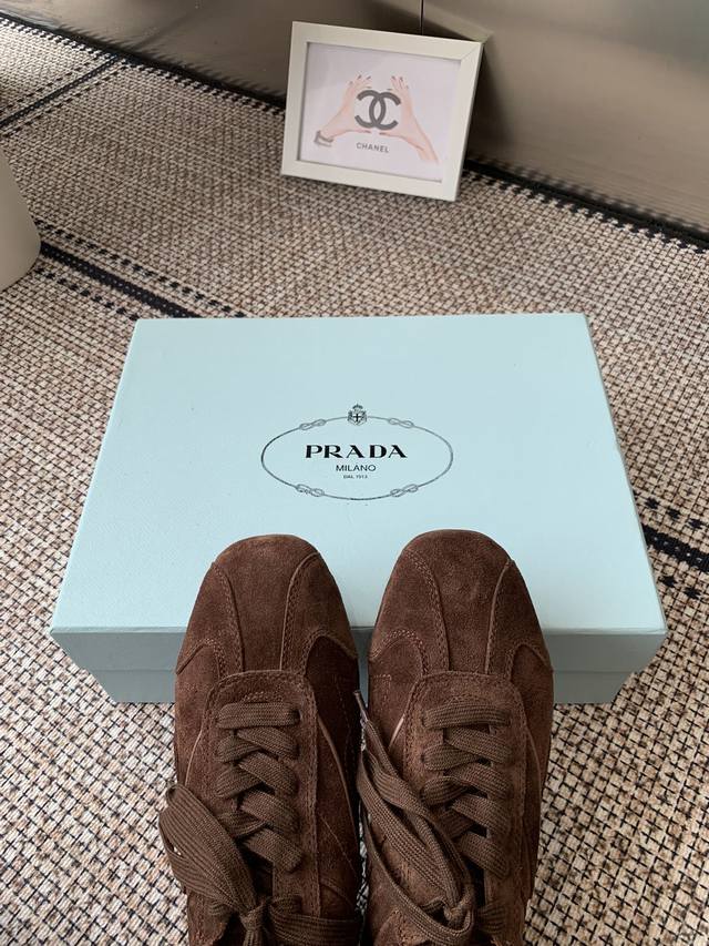 High-quality Prada 25Ss Spring/Summer new German training casual shoes. Exquisitely crafted with even stitching, showcasing the superior leather quality. Multi-color patchwork, stylish and elegant, soft, comfortable, and breathable. Features the Prada logo on the outer side. Fabric lining, silver-stamped logo cowhide insole, and Prada's exclusive rubber outsole. Meticulous details, a versatile choice for everyday wear! Upper: Original imported cowhide silk suede; Insole: Sheepskin; Outsole: Original custom rubber outsole. Size: 35-40. Size 40 is custom-made and non-refundable.