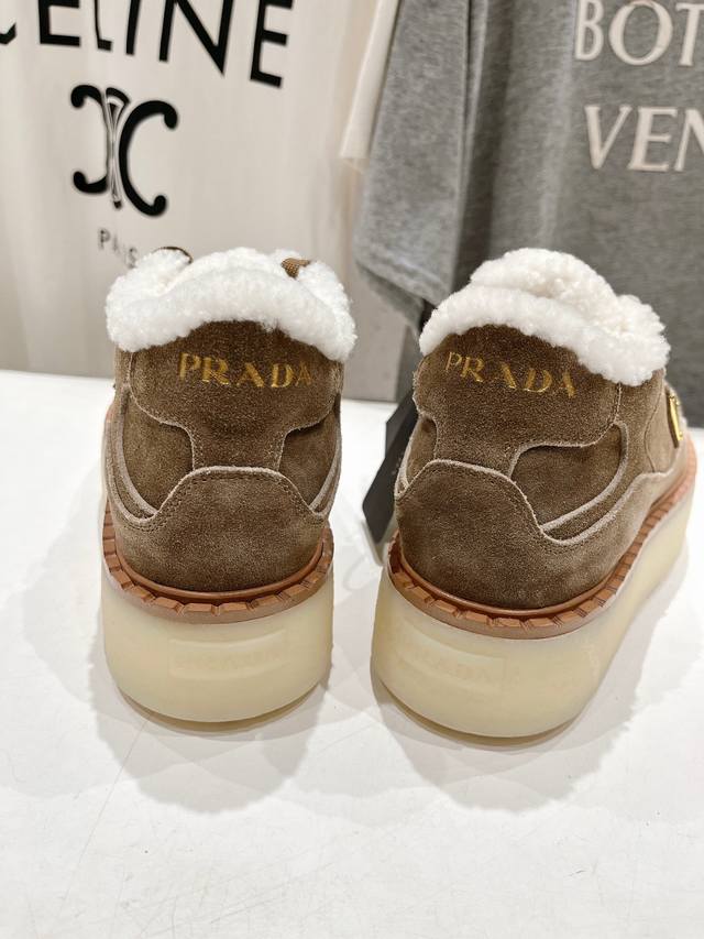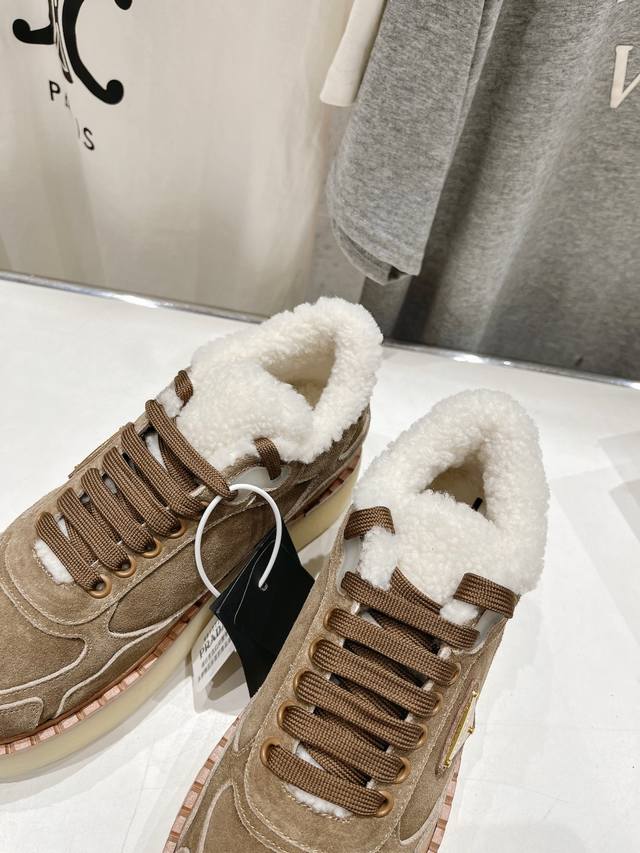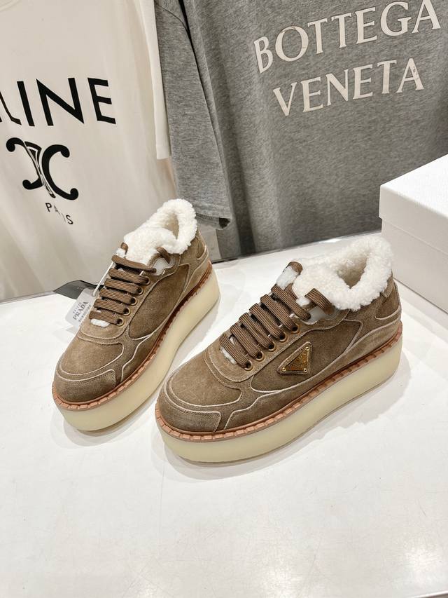 High-quality Prada F029 2025 Autumn/Winter New Style Fleece-lined Thick-soled Sneakers/Casual Shoes - Dazzling Debut! Stylish and elegant design presents a classic silhouette. No matter the occasion, the stage is yours! Material: Original imported cow suede; Lining: Imported sheepskin; Hardware: Original hardware 1:1 mold; Outsole: Original mold TPU outsole; Sizes: 35-39, 40, 41. Custom orders are non-refundable and non-exchangeable.