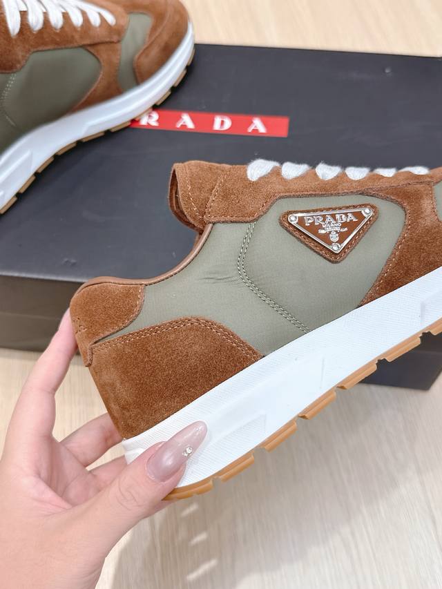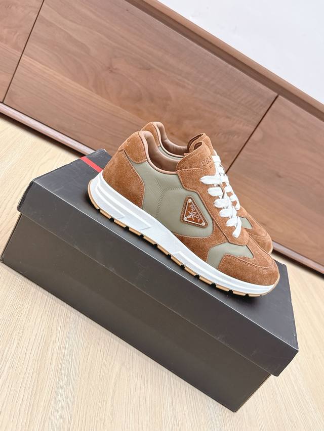 ) - Prada Men's Triangle Logo Casual Sports Shoes, Nylon + Suede Material, Stylish and Versatile, 4.5cm Thick Sole, Size: 39-44, 38, 45. Custom orders are not returnable. (