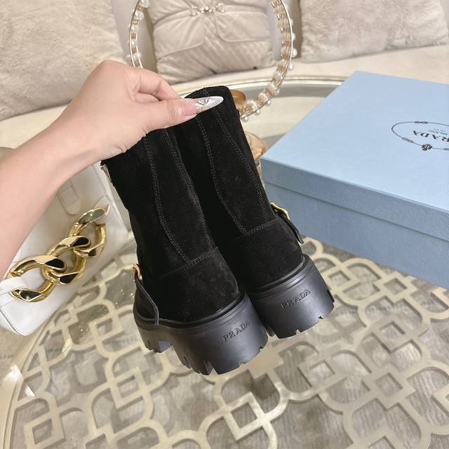 is out, Prada, new Prada style, made of high-gloss denim, with imported sheepskin lining. It is comfortable to wear, and sizes for women are 35 to 41