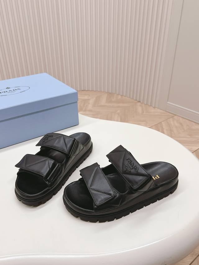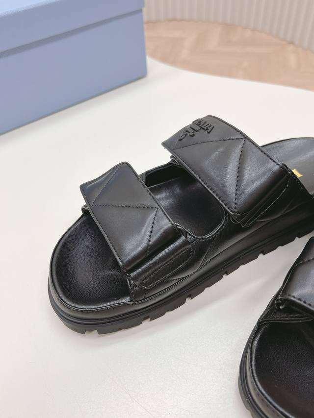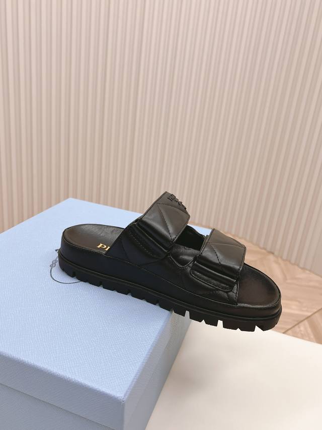 Latest Collection! Prada Spring/Summer New Sandals and Slippers - Latest Runway Collection. Classic upgrades, combining comfort and style. Every color looks great, designed to suit different style needs. Upper: Original custom cowhide leather. Lining: Original custom sheepskin lining, cowhide insole. Outsole: Original molded non-slip outsole. Sizes: 35-40.