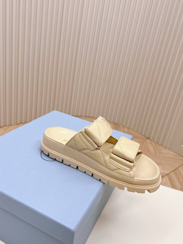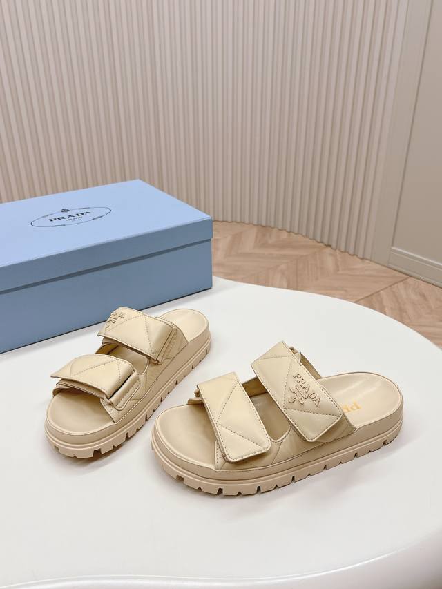Latest Collection! Prada Spring/Summer New Sandals with Velcro Straps - Latest Runway Collection Classic Upgrade: Comfort and Style Combined. Every color looks great, designed to suit different style needs. Upper: Original Custom Cowhide Leather. Lining: Original Custom Sheepskin Lining, Cowhide Insole. Outsole: Original Mold Anti-Slip Outsole. Sizes: 35-40.