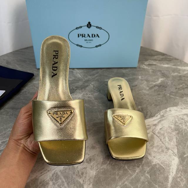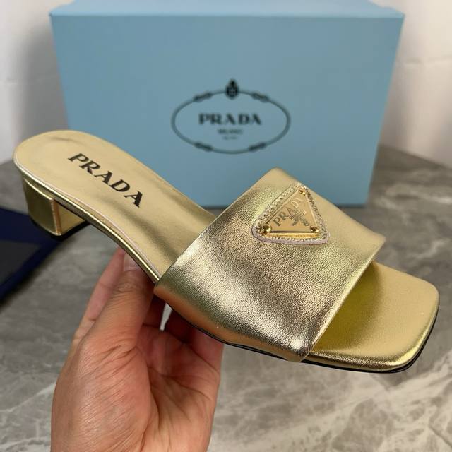 Latest model from P brand. Upper: Imported sheepskin, cross-grain cowhide. Lining: Mixed sheepskin. Pad: Mixed sheepskin. Sole: Italian original genuine leather outsole. Heel height 3.5cm. Features the iconic triangle logo and original packaging. Size: 35-41. 41 is customizable.