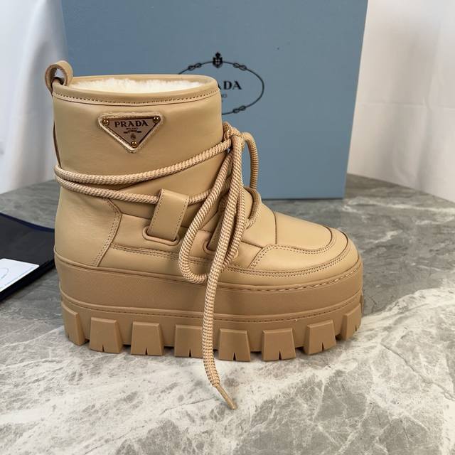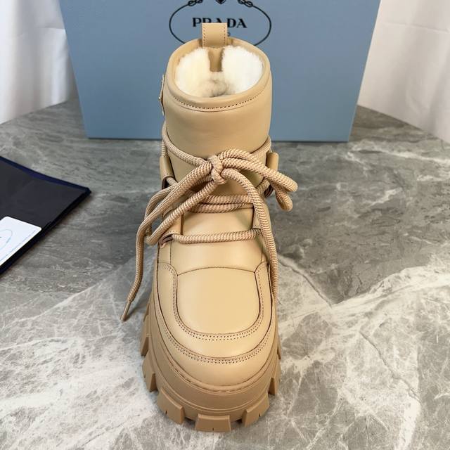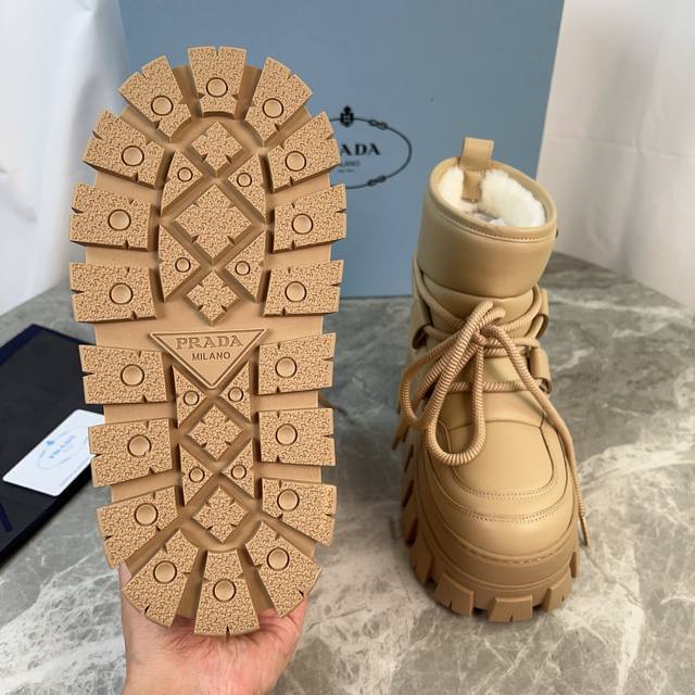 Latest model from Pixnet, top-of-the-line version. Outer: Imported ultra-soft cowhide, high-gloss suede. Lining: Pure wool (one-piece leather). Pad: Pure wool. Sole: 4.5cm thick, non-slip patterned rubber sole. Features the iconic triangle logo and original packaging. Size: 35-42.