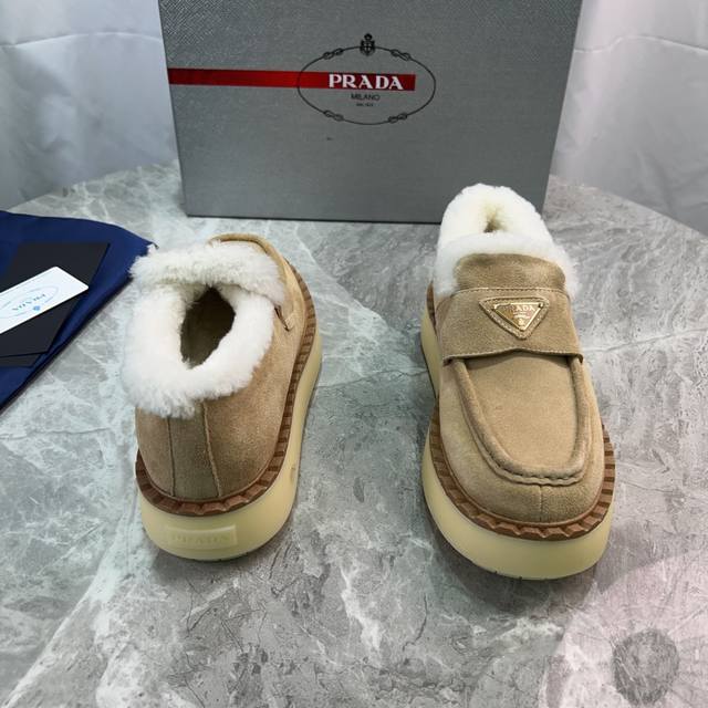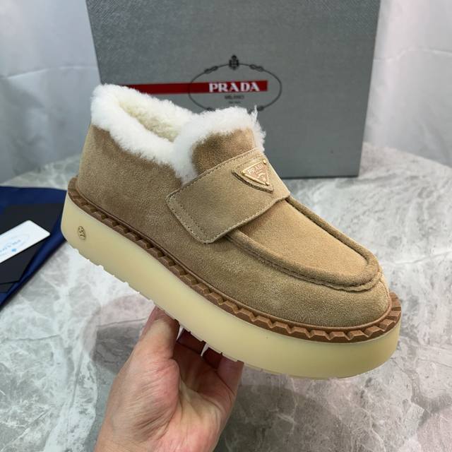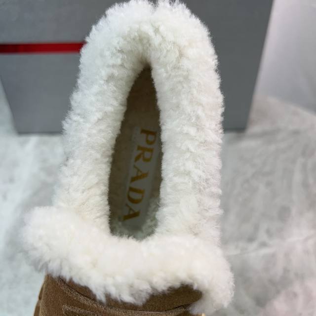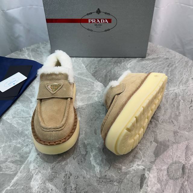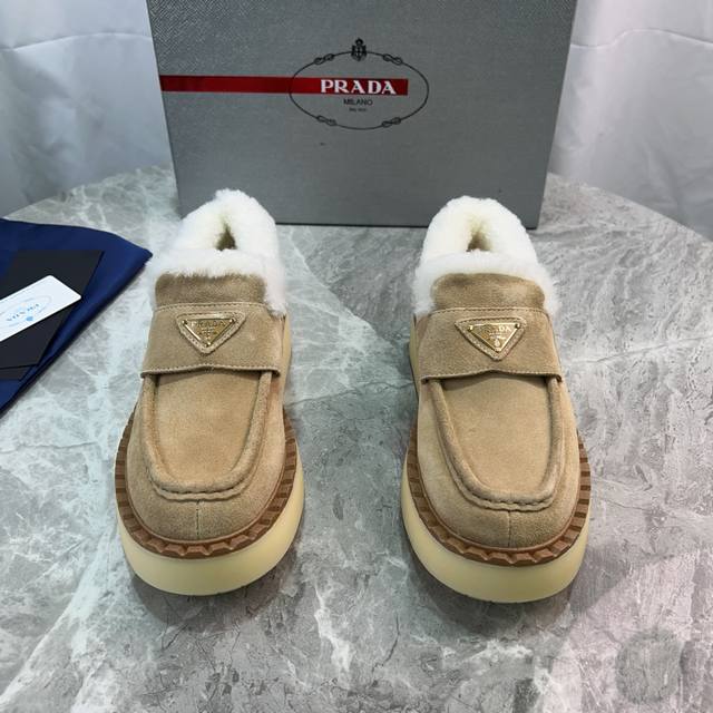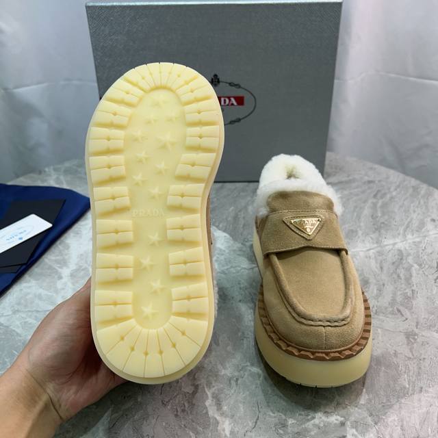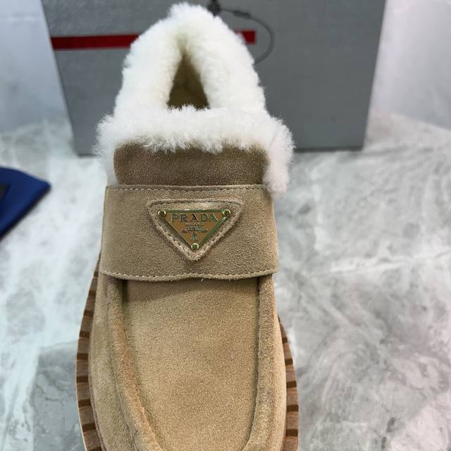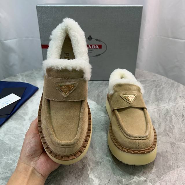 Latest P brand furry shoes Upper: High-gloss cow suede Lining: 100% genuine wool