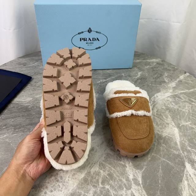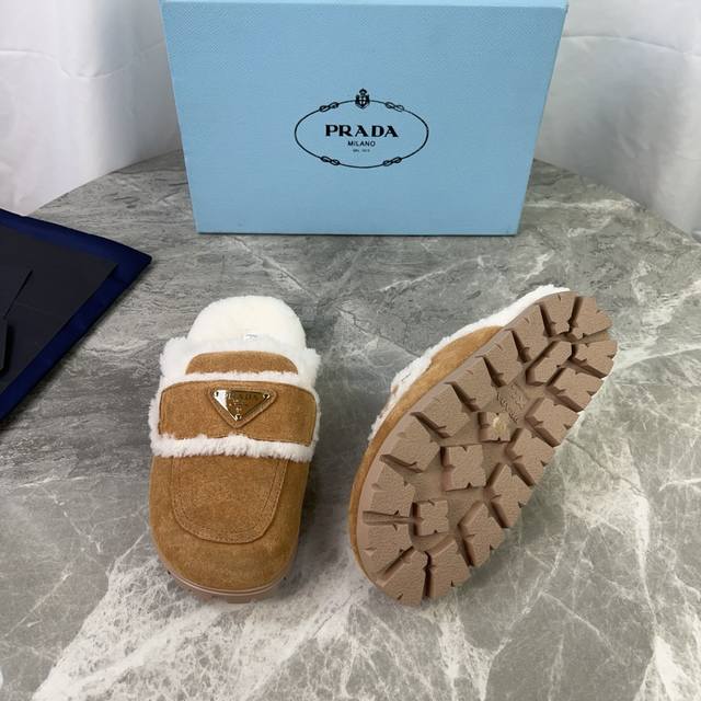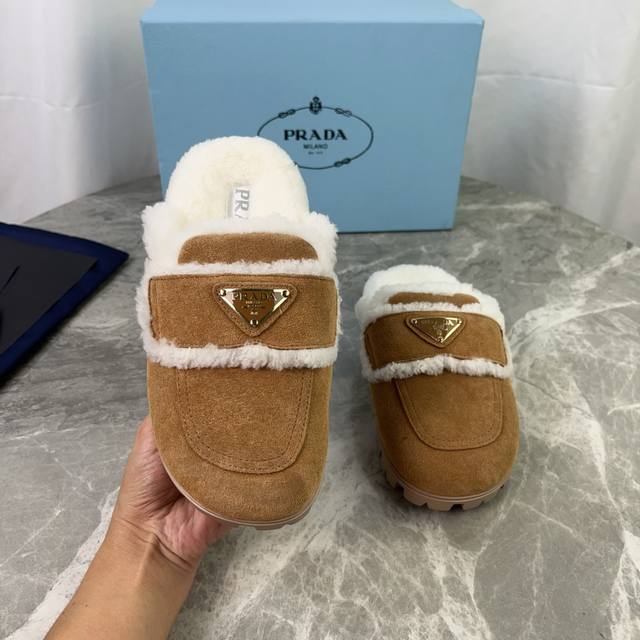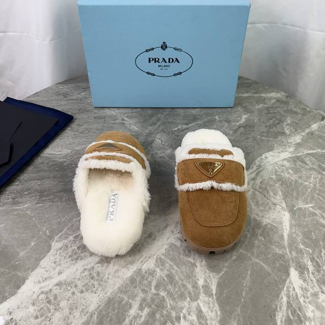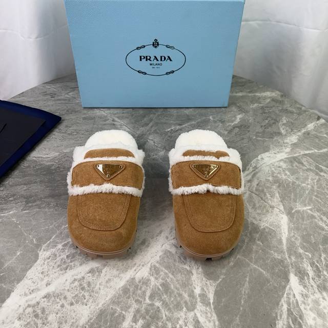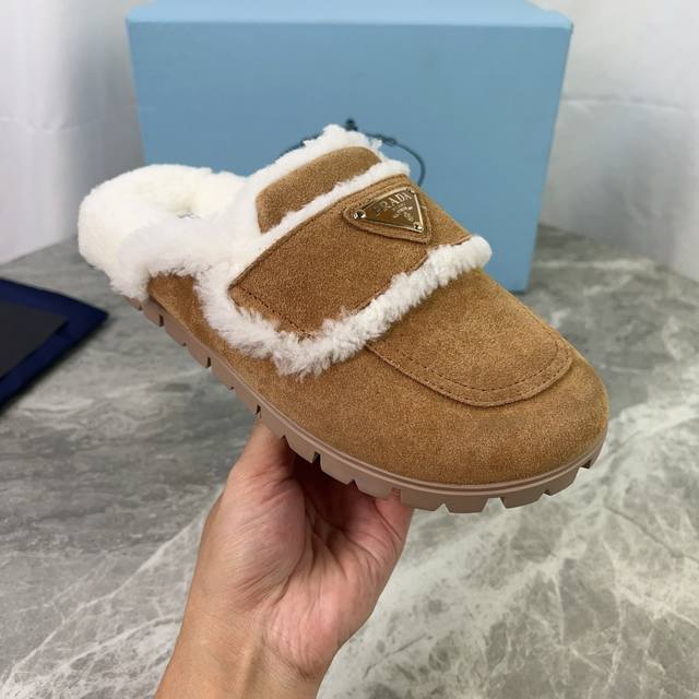 model. Outer: High-gloss cow suede. Lining: Original custom-made genuine wool. Pad: Genuine wool. Sole: Non-slip, wear-resistant patterned rubber outsole. Features the iconic triangle logo and original packaging. Size: 35-41.