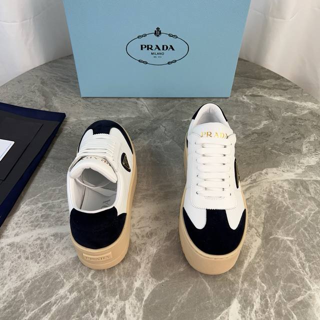 model. Outer: Imported custom top-grain cowhide + suede. Lining: Ultra-soft mixed sheepskin. Sole: Original mold, ultra-lightweight foaming process, 4.5cm thick sole. Features the iconic triangle logo and original packaging. Size: 35-41.