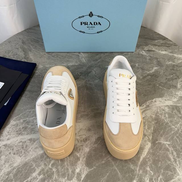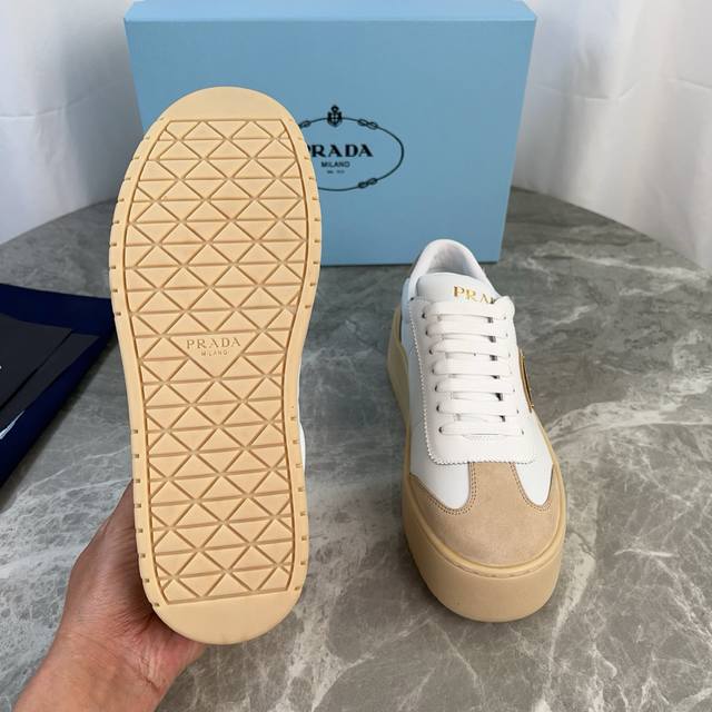 model. Outer: Imported custom top-grain cowhide + suede. Lining: Ultra-soft mixed sheepskin. Sole: Original mold, ultra-lightweight foaming process, 4.5cm thick sole. Features the iconic triangle logo and original packaging. Size: 35-41.
