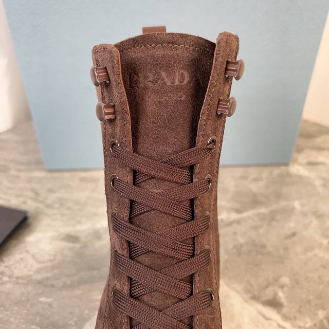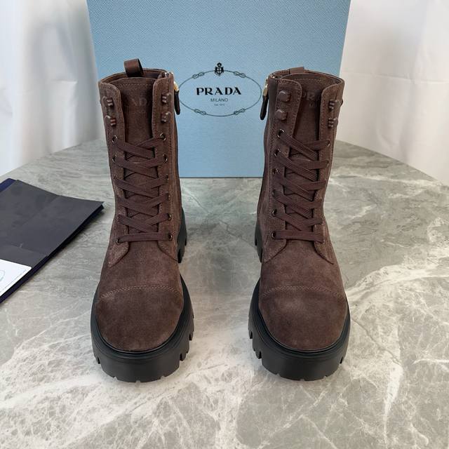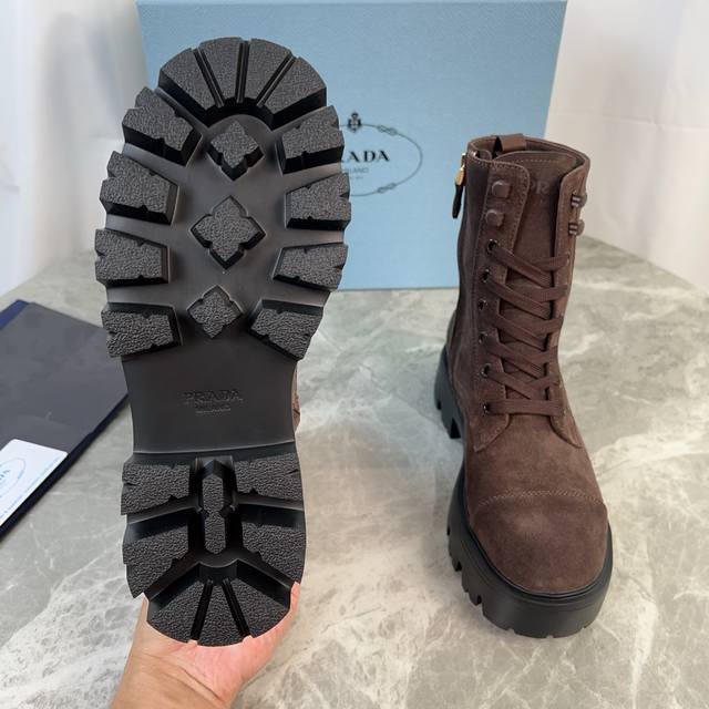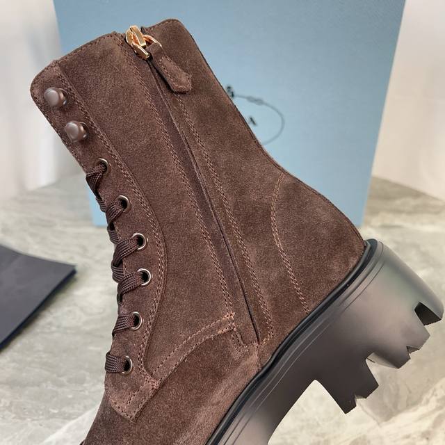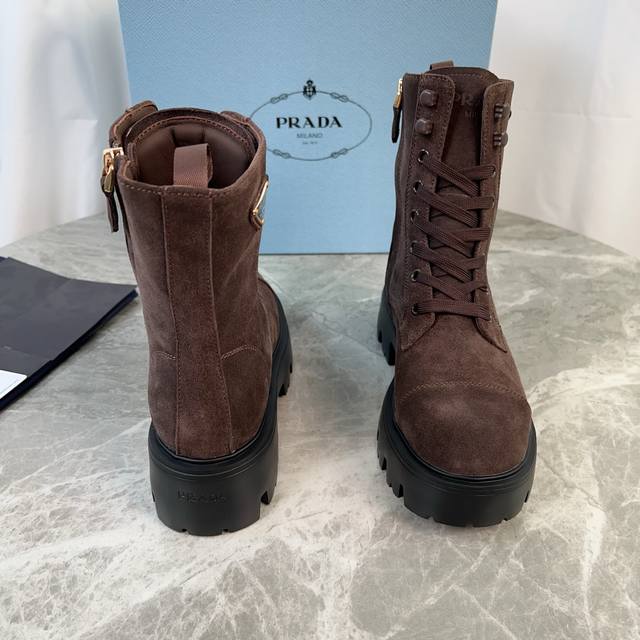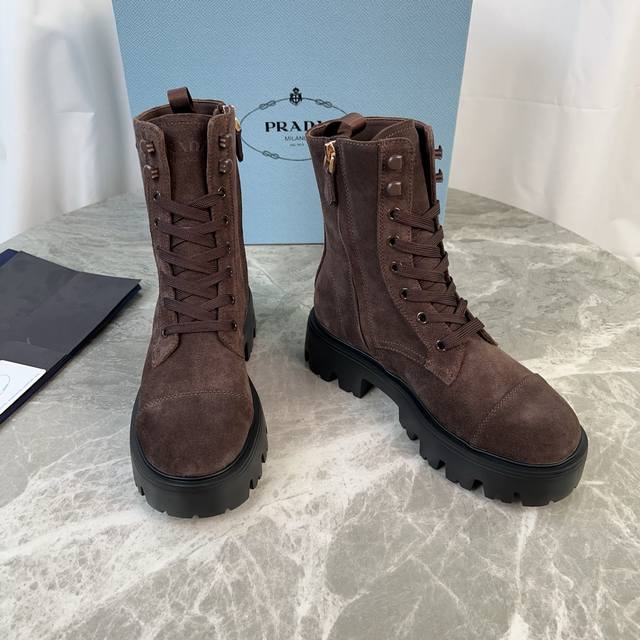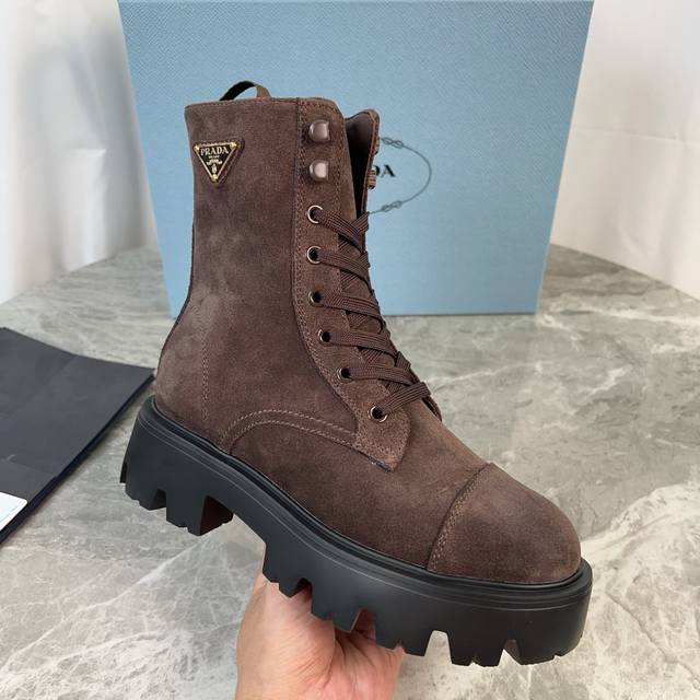 model. Outer: Imported full-grain cowhide, high-gloss suede. Lining: Imported calfskin. Pad: Imported calfskin. Sole: Original craftsmanship, 6cm thick sole. Features the iconic triangle logo and original packaging. Size: 35-42 (41.42 custom sizes available).