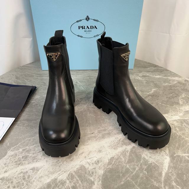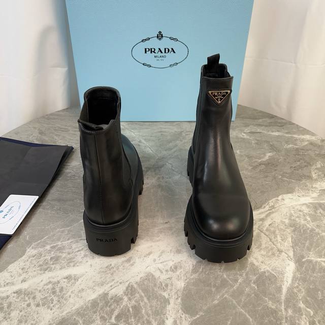 model. Outer: Imported split-edge beads, calfskin. Lining: Imported mixed sheepskin. Pad: Mixed sheepskin. Sole: Original craftsmanship, 6cm thick sole. Features the iconic triangle logo and original packaging. Size: 35-41, 40-41 (custom sizes available).
