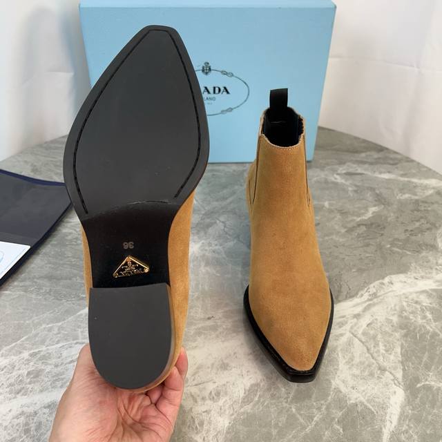 Latest P-brand model. Upper: High-gloss suede. Lining: Calfskin lining and insole. Sole: Italian original rubber sole. Heel: Layered leather heel. Original packaging. Sizes 35-42, 41.42 custom sizes available.