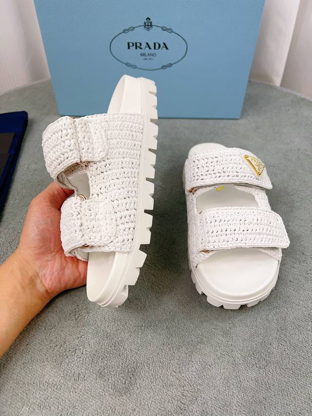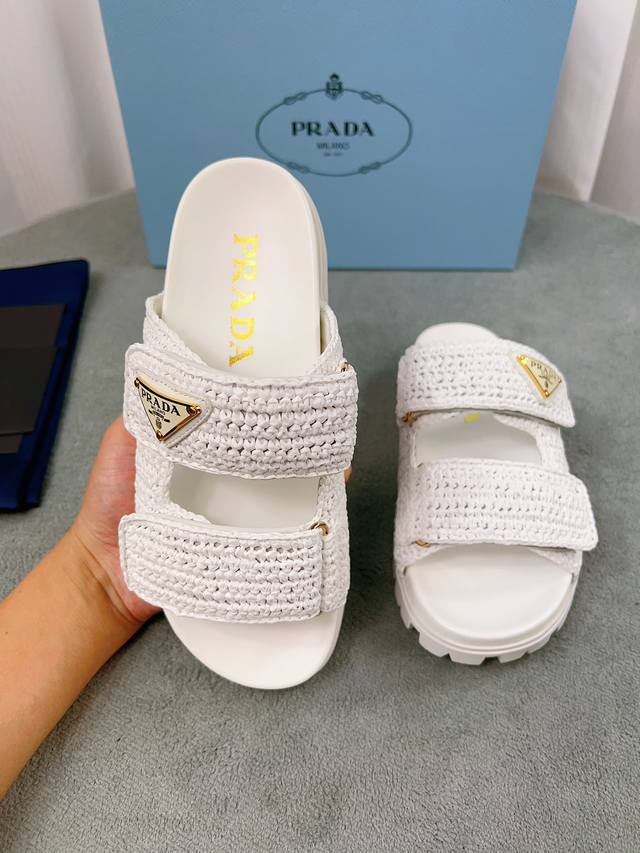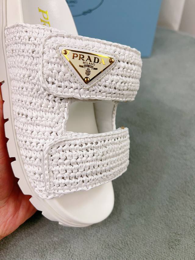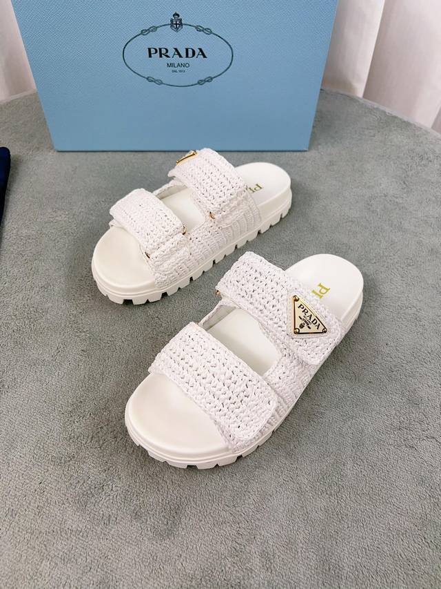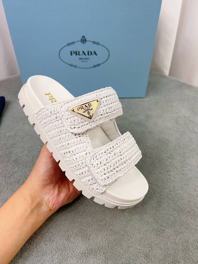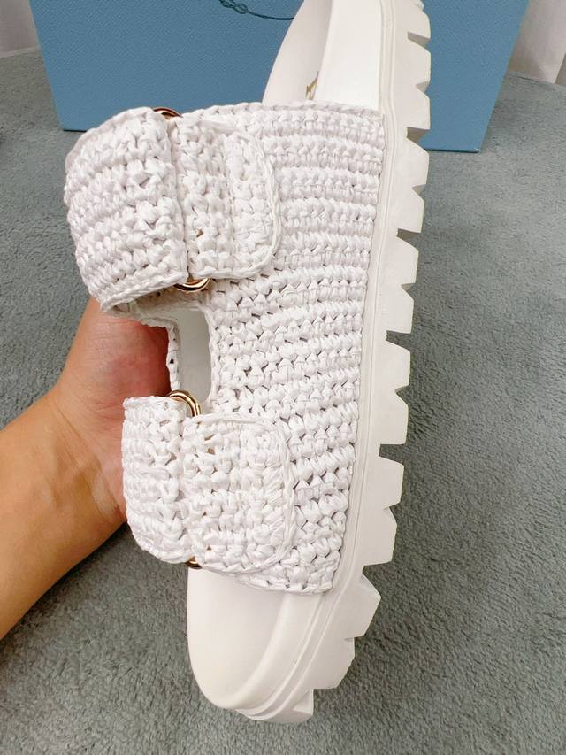 Premium-Grade Prada 25Ss New Spring/Summer Prada Woven Slippers Modern Lines And
