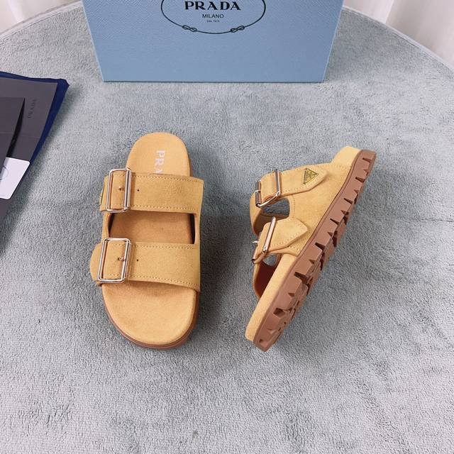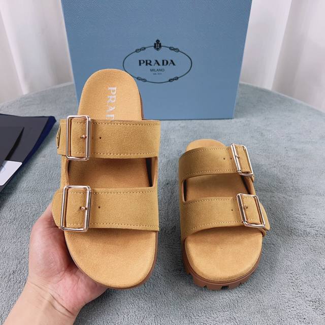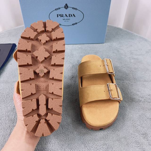 Latest Prada style. Upper: Imported cowhide, suede. Lining: Imported water-dyed eco-friendly sheepskin. Sole: 2cm rubber embossed sole. Size: 35-41.
