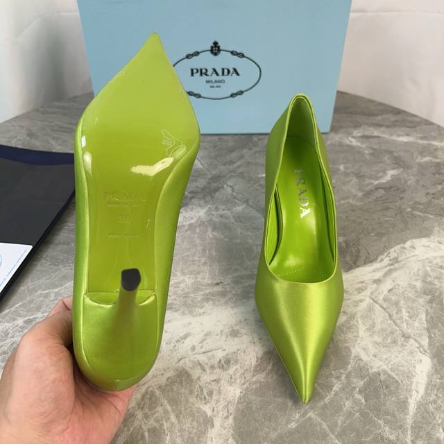 Latest top-tier version from P brand. Upper: Imported genuine silk satin. Lining: Mixed sheepskin. Insole: Sheepskin insole. Sole: Original genuine leather outsole. Heel: Satin-covered heel, 8.5cm high. Original packaging. Size: 34-41. Custom sizes 34, 40, and 41 are available.