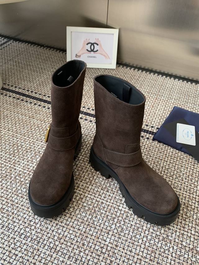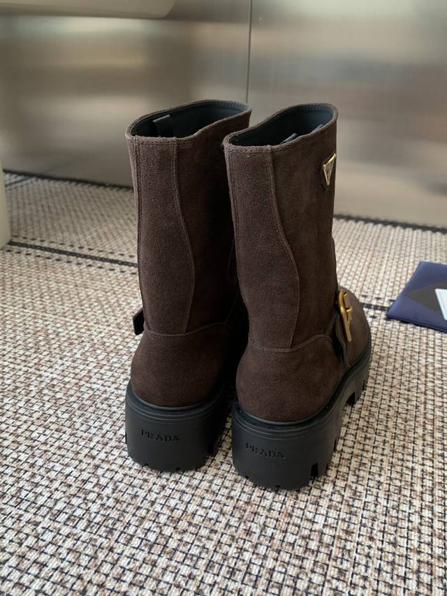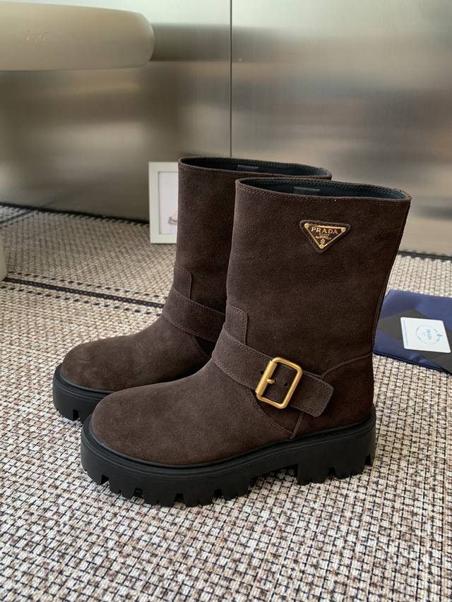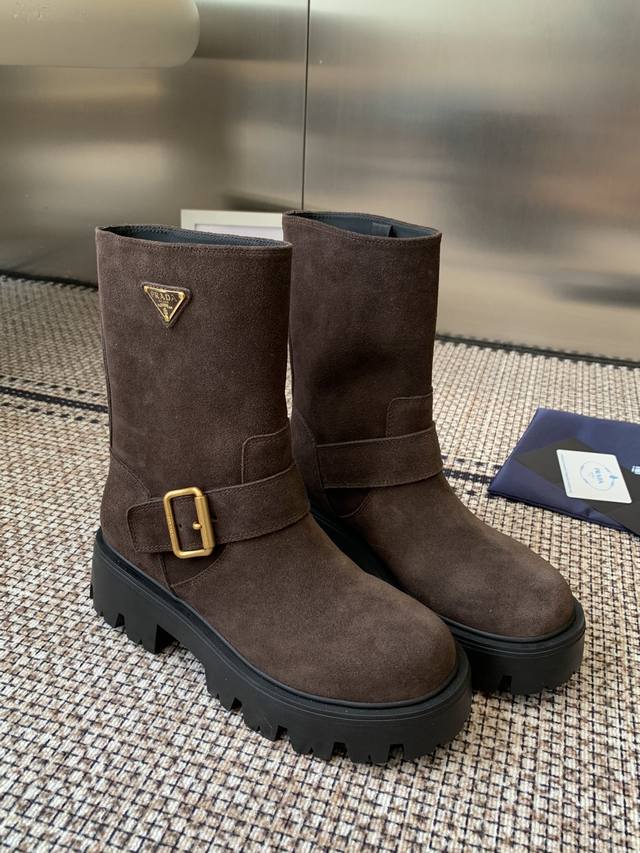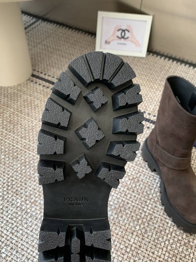 Leather cowhide leather Prada 25Ss classic triangle logo slip-on boots for women. A collection you can't find in winter, this is definitely the hottest item this year! They're so pretty! Prada boots are truly amazing! They're so stylish and slim, and they're the perfect balance of style and elegance. Upper: cowhide leather Lining: cowhide Outsole: Original molded outsole Sizes: 35-41 40.41 made to order, no returns or exchanges.