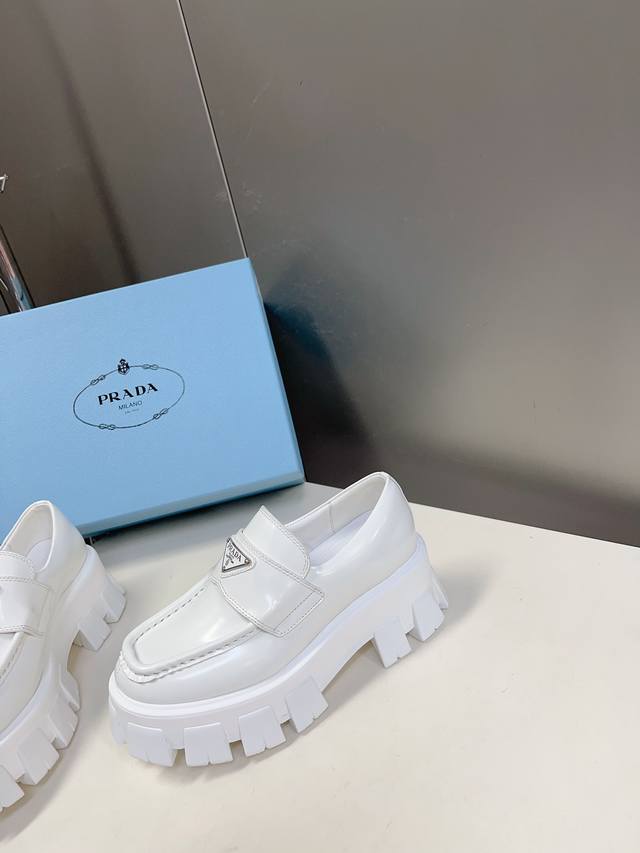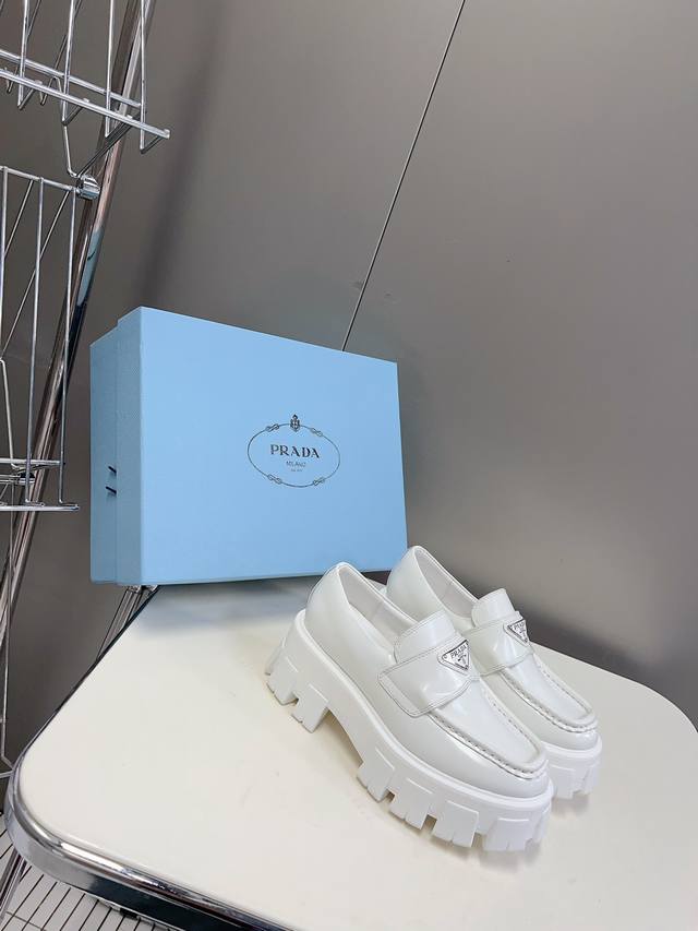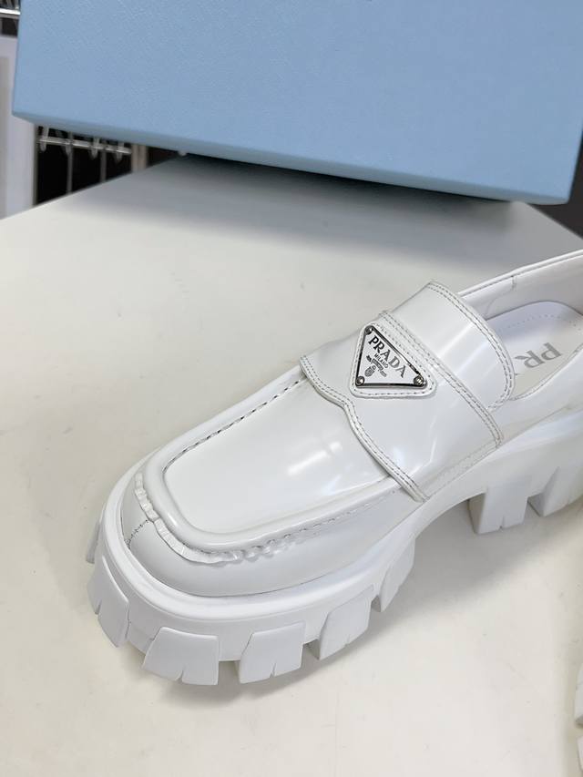 Male 10 Prada Prada top version platform thick-soled triangle logo couple loafers