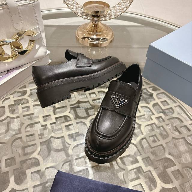 Prada Loafers Top Version Height-Increasing Leather Shoes Hot Selling, Original Replica! Edge Finishing