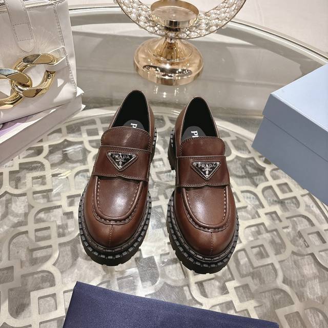 Prada Loafers Top Version Height-Increasing Leather Shoes Hot Selling, Original Replica! Edge Finishing