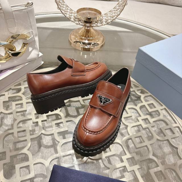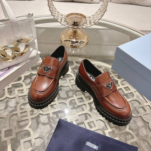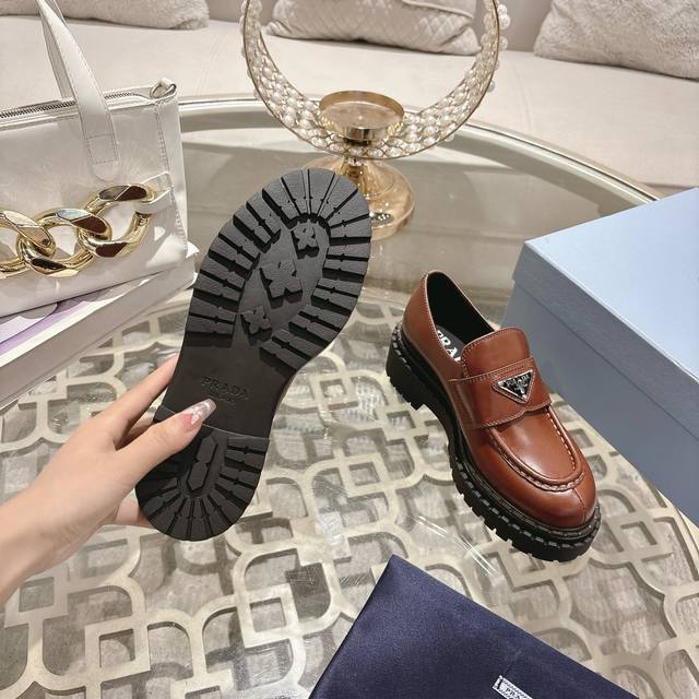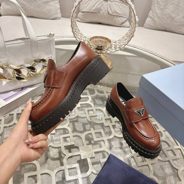 Prada Loafers Top Version Height-Increasing Leather Shoes Hot Selling, Original Replica! Edge Finishing