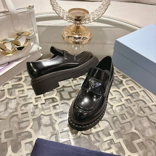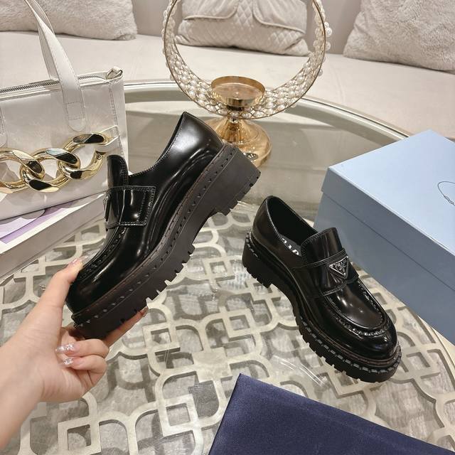 Prada Loafers Top Version Height-Increasing Leather Shoes Hot Selling, Original Replica! Edge Finishing