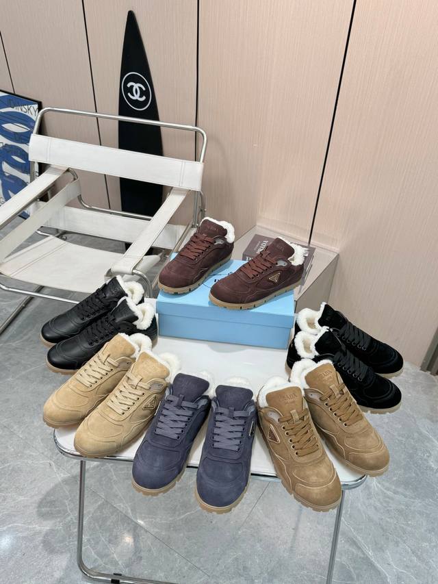 Men's +10 Prada Fashionable Couple Must-Have Prada Casual Shoes with Classic Triangle Logo DDD This Prada couple shoe is amazing! DDD Made of genuine leather, the texture is superb, showcasing quality. DDD The lining is real wool, soft, comfortable, and warm for your feet. DDD The casual style is versatile and fashionable, easily handling any occasion, whether it's a date or a trip. DDD Wear them with your loved one and become the most stylish couple on the street! DDD #Prada #CoupleShoes #Fashion DDD Material: Imported cowhide, imported suede DDD Lining: Imported wool DDD Outsole: Raw rubber sole, non-slip and wear-resistant DDD Sizes: 35-46 Couple size 46, custom made DDD